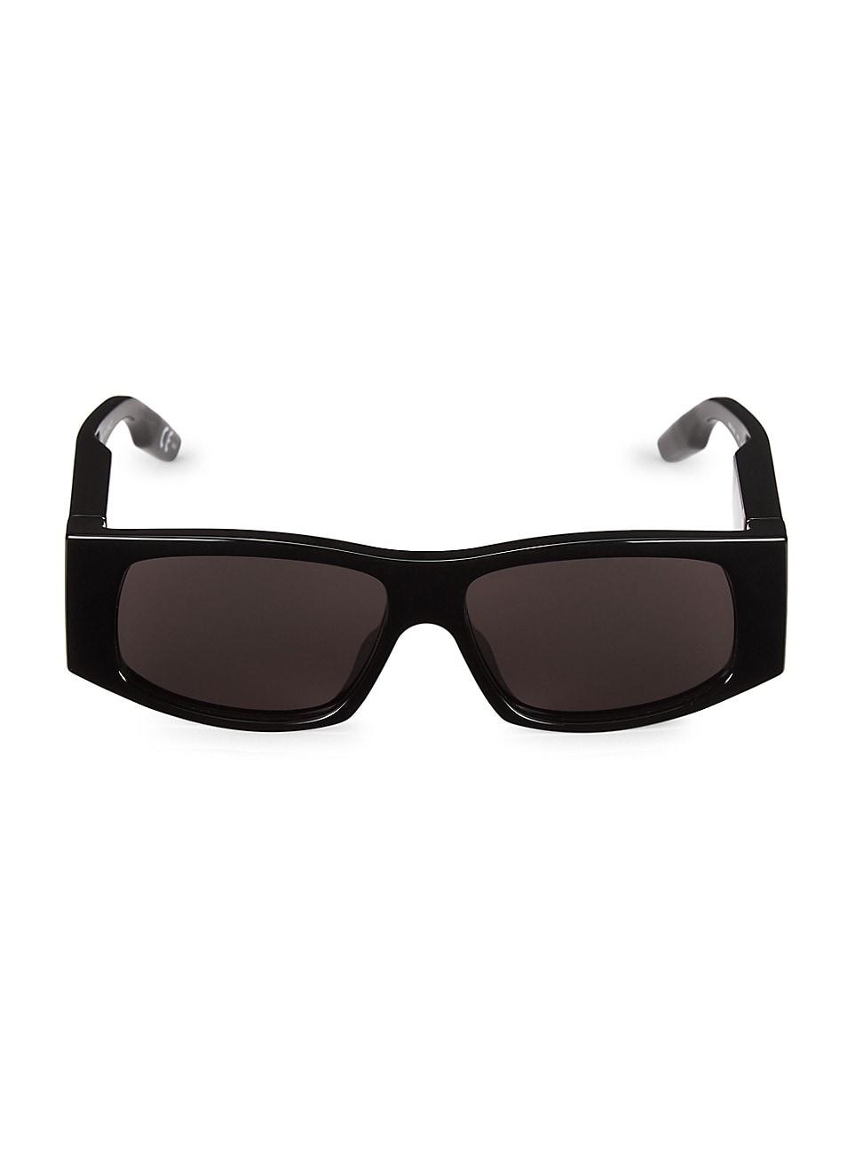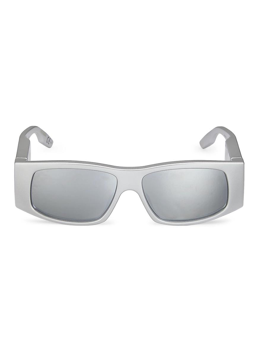 Inspired by light-up sneakers popular in the 90s, these chic rectangular sunglasses feature a lightweight LED system that illuminates the Balenciaga logo at the temples. The logo animates in multiple colors and patterns, controllable with a tap sensor. The light can either blink, remain static, or fade from one color to another, in blue, red, green, purple, yellow and white, depending on the wearers wishes. The internal battery is easily chargeable thanks to a USB cable. 100% UV protection Case and cleaning cloth included Acetate Made in Italy SIZE 56mm lens width 15mm bridge width 150mm temple width. Soft Accessories - Sunglasses > Balenciaga > Saks Fifth Avenue > Barneys. Balenciaga. Color: Silver.