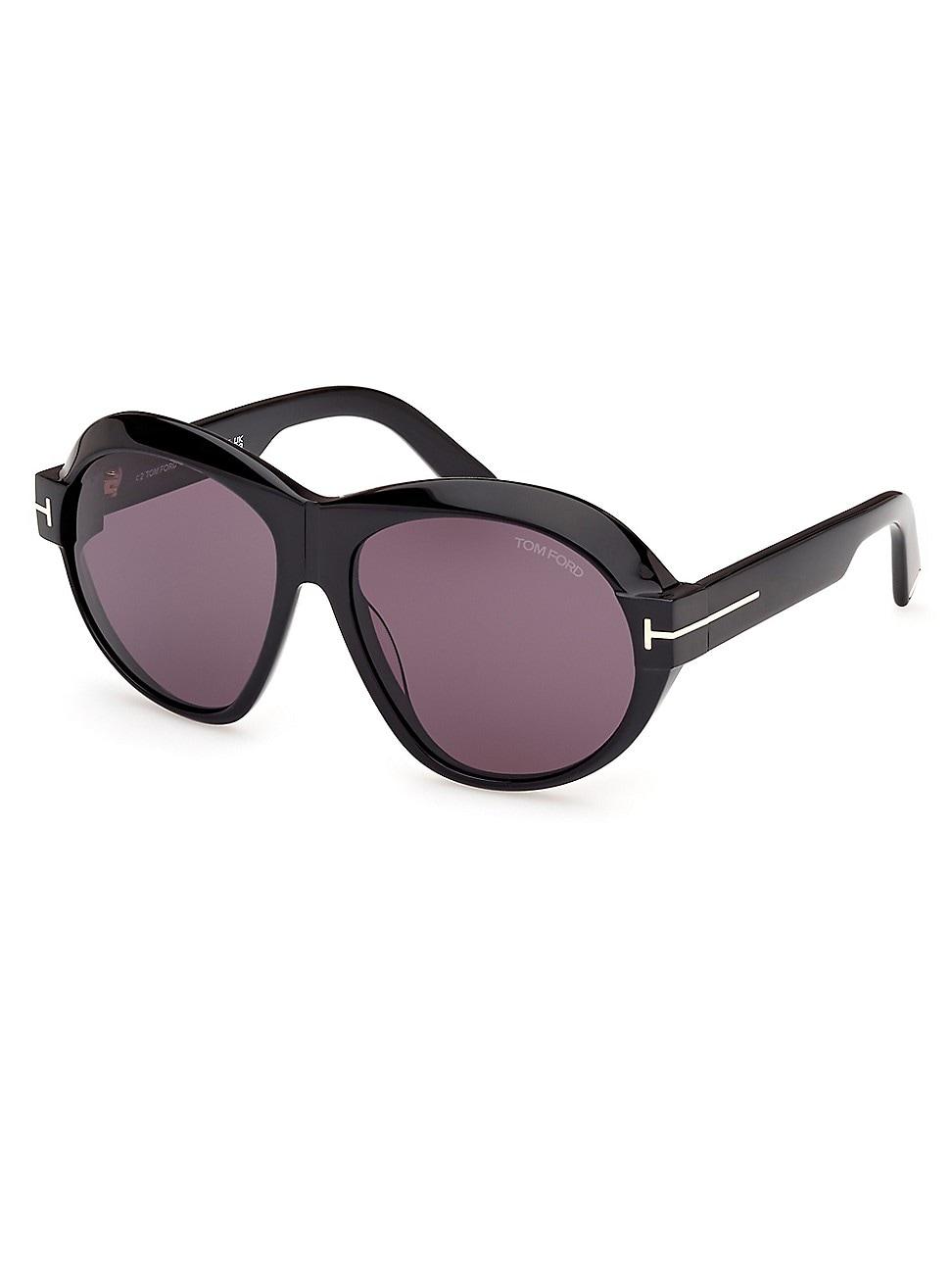 From the Tom Ford Collection. The D107 round sunglasses are crafted of acetate and feature solid UV-protective lenses. 100% UV protection Solid lenses Includes case and cleaning cloth Acetate Made in Italy SIZE 59mm lens width 15mm bridge width 135mm temple length. Soft Accessories - Sunglasses > Tom Ford > Saks Fifth Avenue > Barneys. TOM FORD. Color: Black Deep Purple.