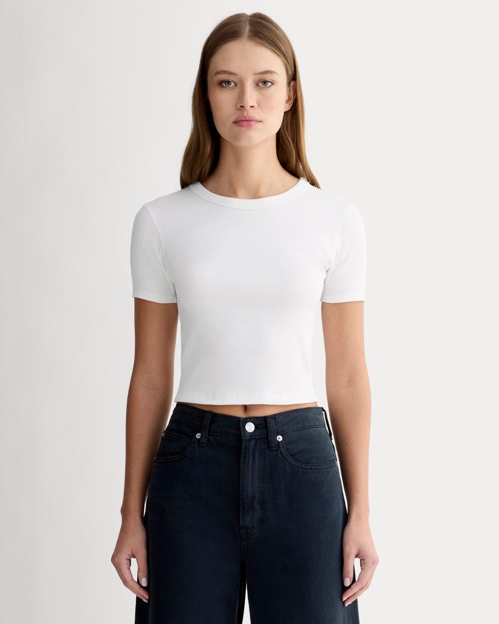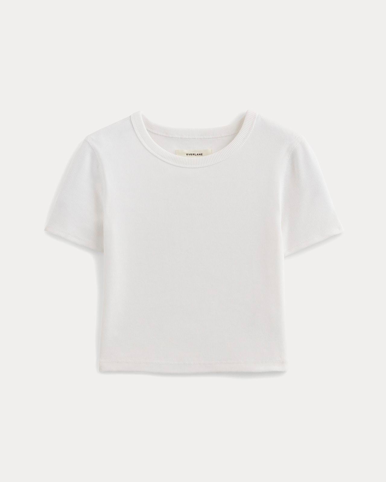 Your selfies just got even cuter. The 90s Rib Tee features a scallop-weave neckline and sleeve detailing in a playfully cropped silhouette. Revealing just a hint of midriff its textured fine-rib fabricmade of organic cotton with a touch of elastane gives it that figure-skimming fit. Pairing well with your favorite high-waist jeans or pants for that perfect on-camera moment. Womens 90s Rib T-Shirt by Everlane in White, Size 2XS, Cotton