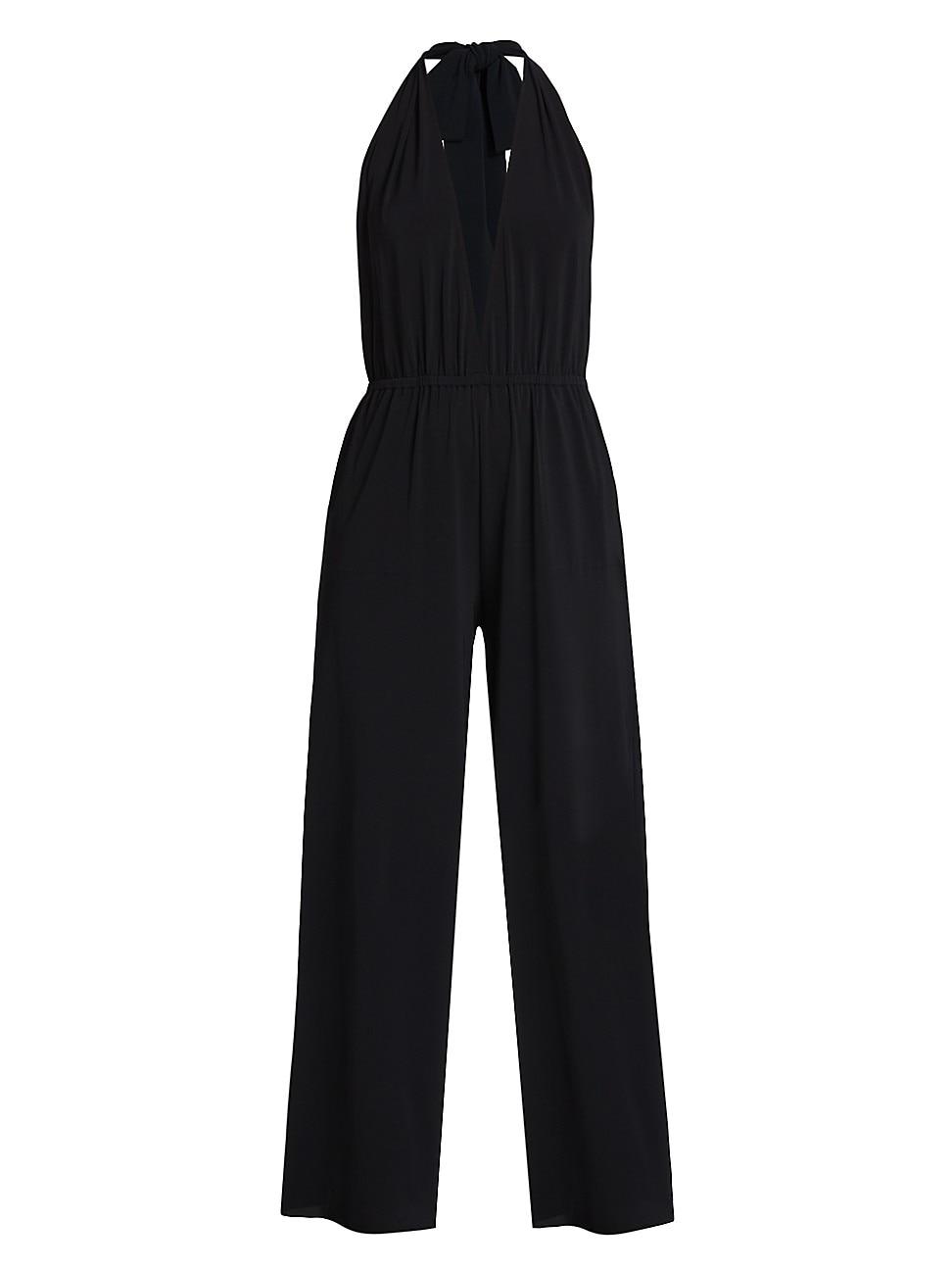 Crafted in France, ERES airy Abby jumpsuit showcases a plunging halterneck and straight, sweeping leg. This lightweight design features a comfortable stretch waist and a backless silhouette. Plunge halterneck Sleeveless Elasticized waist Side slit pocket Nape self-tie closure 94% polyamide/6% elastane Machine wash Made in France SIZE & FIT About 54 from topline to hem Leg opening, about 27.5 Model measurements: 510 tall Model is wearing a US size Small Please note: Measurements are taken from a US size Medium. Outerwear And Swimwear - Eres > Eres > Saks Fifth Avenue > Barneys. ERES. Color: Noir. Size: Large.