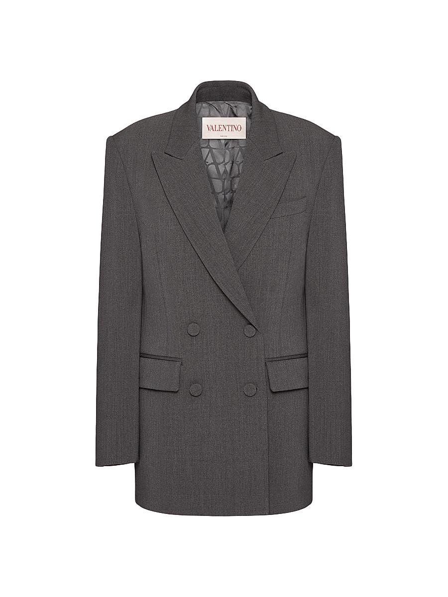 Active gabardine jacket. Double-breasted Front button closure Active Gabardine (98% Wool, 2% Elastane) Toile Iconographe Jacquard lining (100% Cupro) Length: 77 cm / 30.3 in. from the shoulders in an Italian size 40 Sleeve length: 83 cm / 32.7 in. from the center back in an Italian size 40 The model is 176 cm / 59 tall and wears an Italian size 40 Made in Italy. Lsd Rtw - Valentino Rtw > Valentino Garavani > Saks Fifth Avenue > Barneys. Valentino Garavani. Color: Grey. Size: 6.