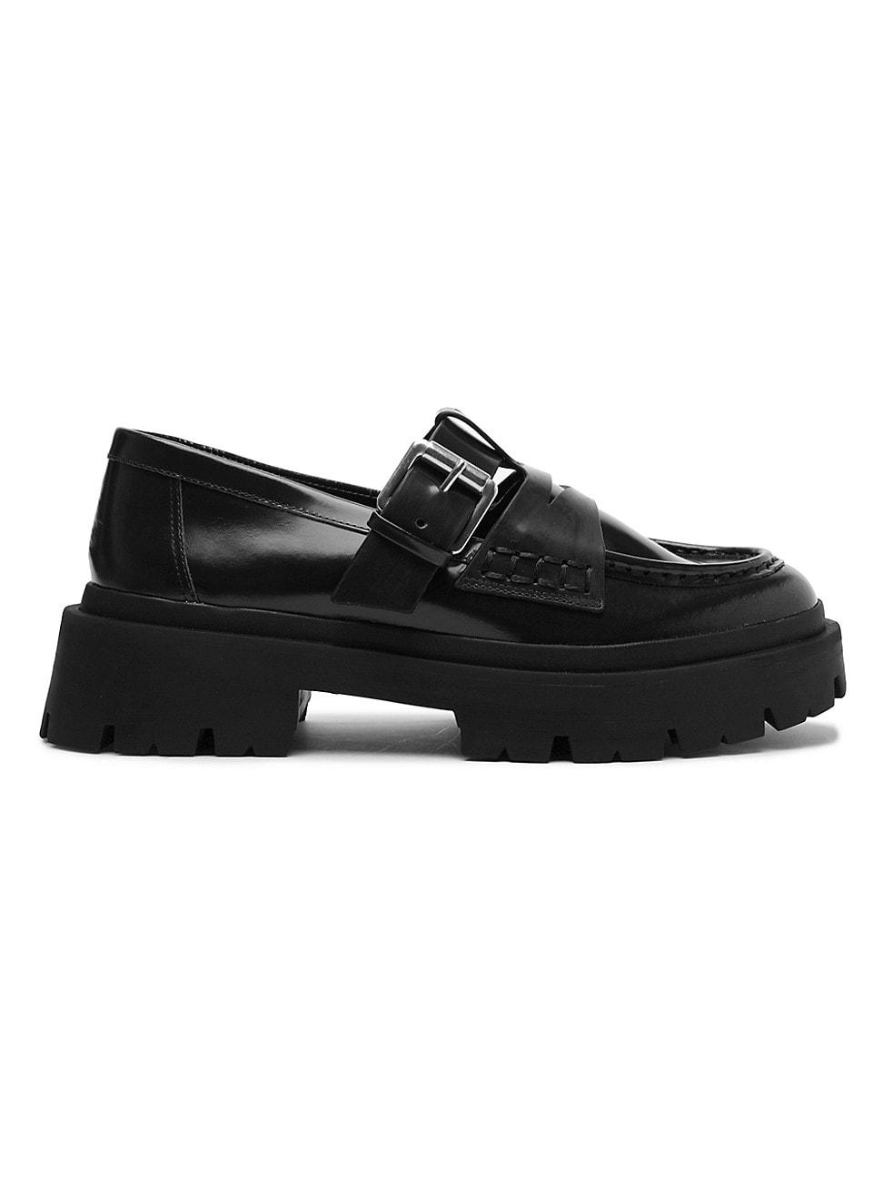 Crafted of leather, these Schutz Alana loafers feature a chunky platform sole and a double strap detail across the vamp. The glossy finish and contemporary design make this pair a standout. Apron toe Slips on Leather upper Synthetic lining Synthetic sole Imported SIZE Platform: about 2 (50mm). Womens Shoes - Contemporary Shoes > Schutz > Saks Fifth Avenue > Barneys. Schutz. Color: Black. Size: 6.