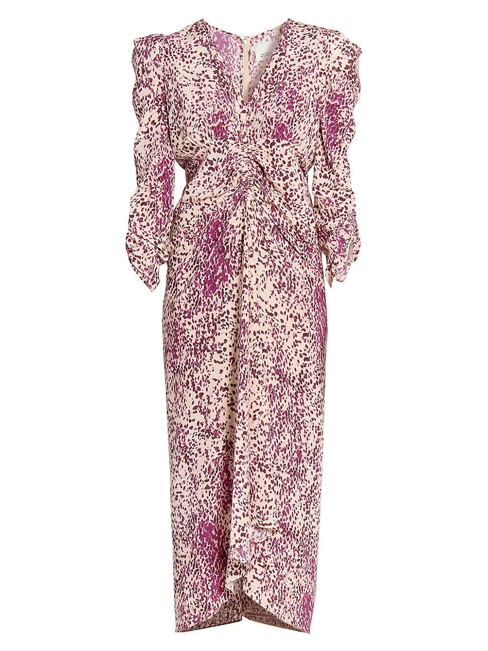 Crafted of printed stretch silk, Isabel Marants striking Albini midi-dress showcases gathered and puff three-quarter length sleeves and pickups at the waist creating a textured look. V-neck Three-quarter-length gathered puff sleeves Gathered waist Concealed back zip closure 91% silk/9% elastane Dry clean Imported SIZE & FIT Model measurements: 510 tall Model is wearing a US size 4 ABOUT THE BRAND Anyone looking for a laid-back blend of bohemian and Parisian-chic knows to turn to Isabel Marant. Since 1994, her namesake label has been the go-to for textured knitwear, flowing dresses and Western-inspired accessories. Advanced Designer - Designer Emerging Brands > Isabel Marant > Saks Fifth Avenue > Barneys. Isabel Marant. Color: Purple Ecru. Size: 6.