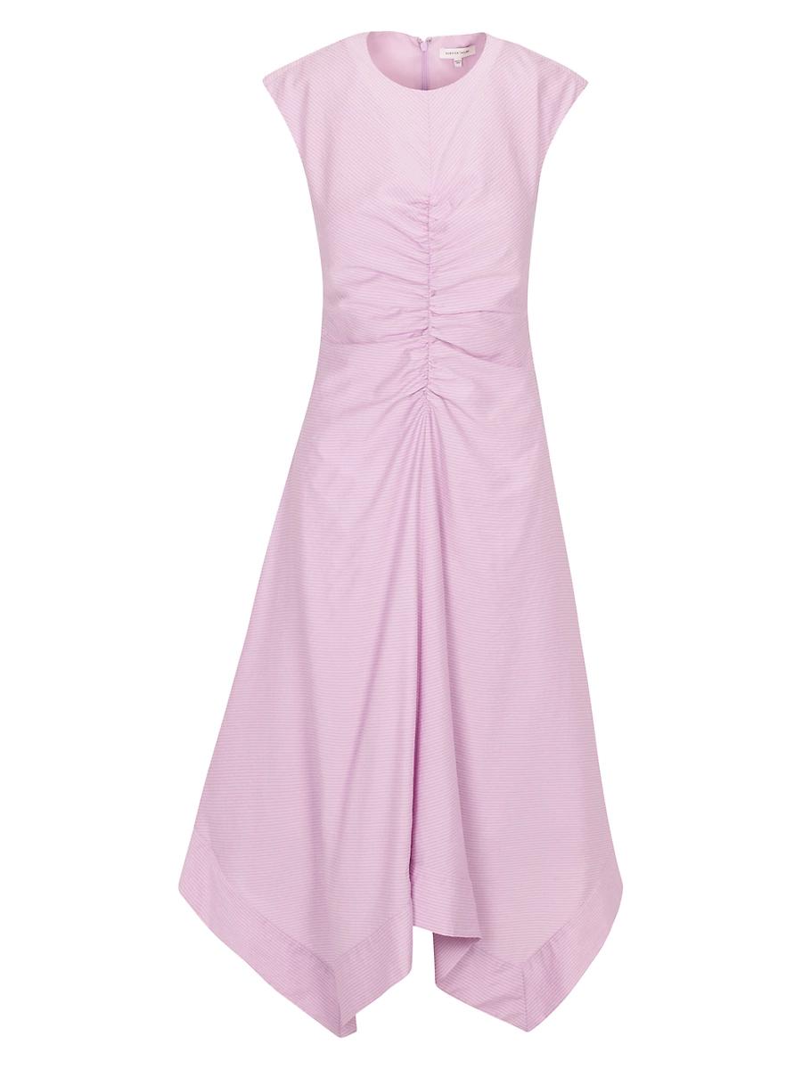 Rebecca Taylors Allegra midi-dress combines a ruched bodice and an asymmetrical handkerchief skirt for a silhouette that moves with elegance. The subtle striped print exudes sophistication, while its fluid Italian fabric ensures comfort. Roundneck Cap sleeves Handkerchief hem Back zip closure 80% modal/ 17% nylon/ 3% polyester Dry clean Imported SIZE & FIT About 52 from shoulder to hem Model measurements: 510 tall Model is wearing a US size 4 ABOUT THE BRAND At only 26 years old, New Zealand-born designer Rebecca Taylor moved to New York City and launched her eponymous line. Soft yet structured, Taylors versatile pieces evoke a modern, feminine aesthetic with fanciful florals, delicate eyelet lace and a masterful use of color. Modern Collections - Rebecca Taylor > Rebecca Taylor > Saks Fifth Avenue > Barneys. Rebecca Taylor. Color: Wisteria. Size: 0.
