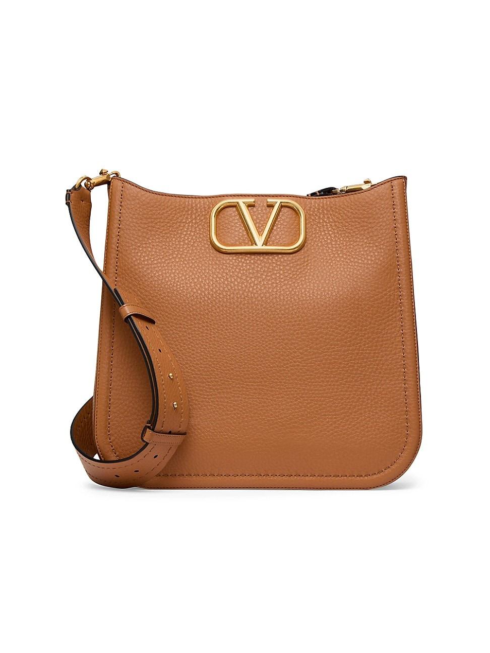 Valentino Garavani Alltime hobo bag in grainy calfskin with metallic, VLogo Signature element. The bag can be worn over the shoulder/crossbody thanks to the adjustable shoulder strap. Antique brass-finish hardware Magnetic closure Adjustable and removable leather shoulder strap Interior: one slip pocket and one zipper pocket Leather shoulder strap drop length: 41 cm / 16.1 in. Dimensions: W 29 x H 29 x D 9 cm / W 11.4 x H 11.4 x D 3.5 in. Made in Italy. Lsd Handbags - Valentino Handbags > Valentino Garavani > Saks Fifth Avenue > Barneys. Valentino Garavani. Color: Almond.