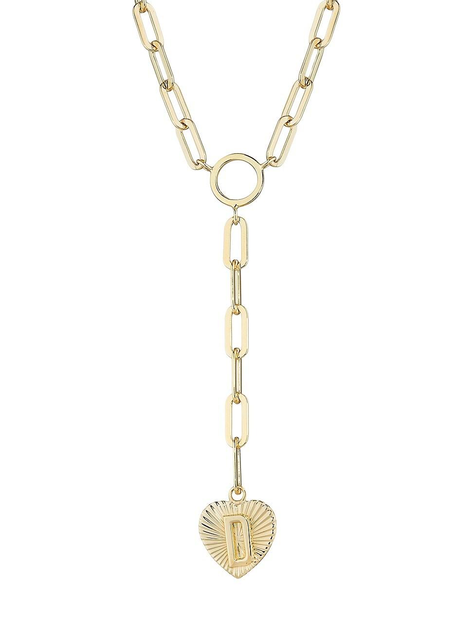 Crafted of 18K-yellow-gold vermeil, Jennifer Zeuner Jewelrys Althea lariat necklace features a heart pendant embossed with an initial. 18K-yellow-gold vermeil Lobster clasp Imported SIZE Chain: about 16-17L Drop: about 1.5L. Fashion Jewelry - Trend Jewelry > Jennifer Zeuner Jewelry > Saks Fifth Avenue > Barneys. Jennifer Zeuner Jewelry. Color: Letter D.