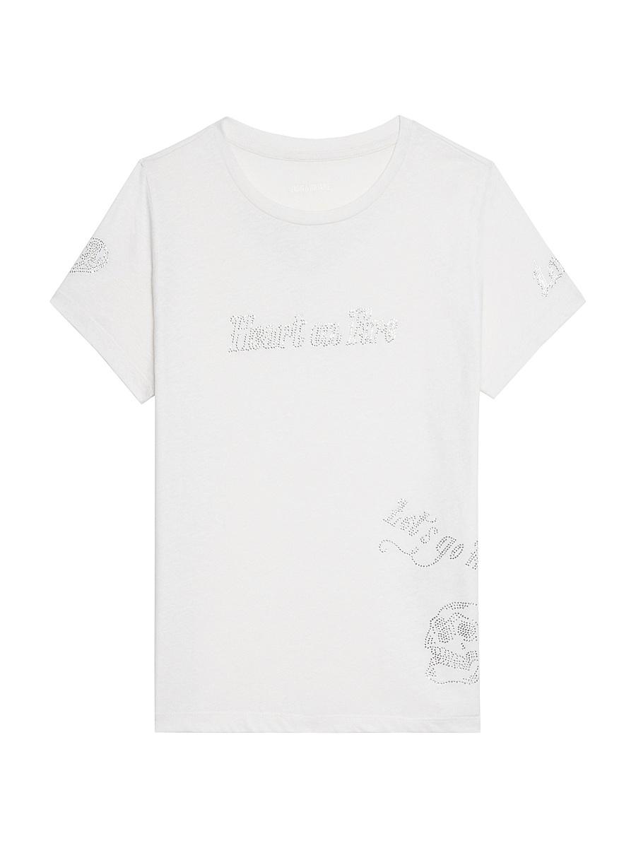 The Alys crewneck T-shirt from Zadig & Voltaire features various rhinestone-encrusted graphics on the bodice and short sleeves for an eye-catching look. Crewneck Short sleeves Pulls over 50% polyester/ 30% cotton/ 20% linen Machine wash Imported SIZE & FIT About 22.5 from shoulder to hem Model measurements: 510 tall Model is wearing a US size Small. Contemporary Sportswear - Contemporary Lifestyle > Zadig & Voltaire > Saks Fifth Avenue. Zadig & Voltaire. Color: Judo. Size: XS.