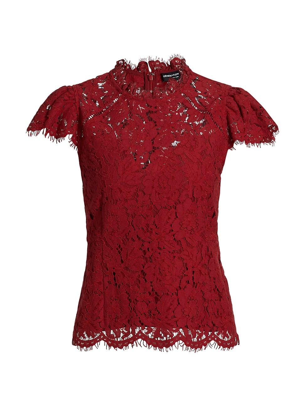 Crafted of corded lace, this Ambrose cap-sleeve top from Generation Love is styled with a mock turtleneck. Mock turtleneck Cap sleeves 60% cotton/40% nylon Lining: 97% polyester/3% elastane Machine wash Imported SIZE & FIT About 21.75 from shoulder to hem Model measurements: 510 tall Model is wearing a US size 4. Contemporary Sportswear - Casual Separates > Generation Love > Saks Fifth Avenue > Barneys. Generation Love. Color: Scarlett. Size: XS.