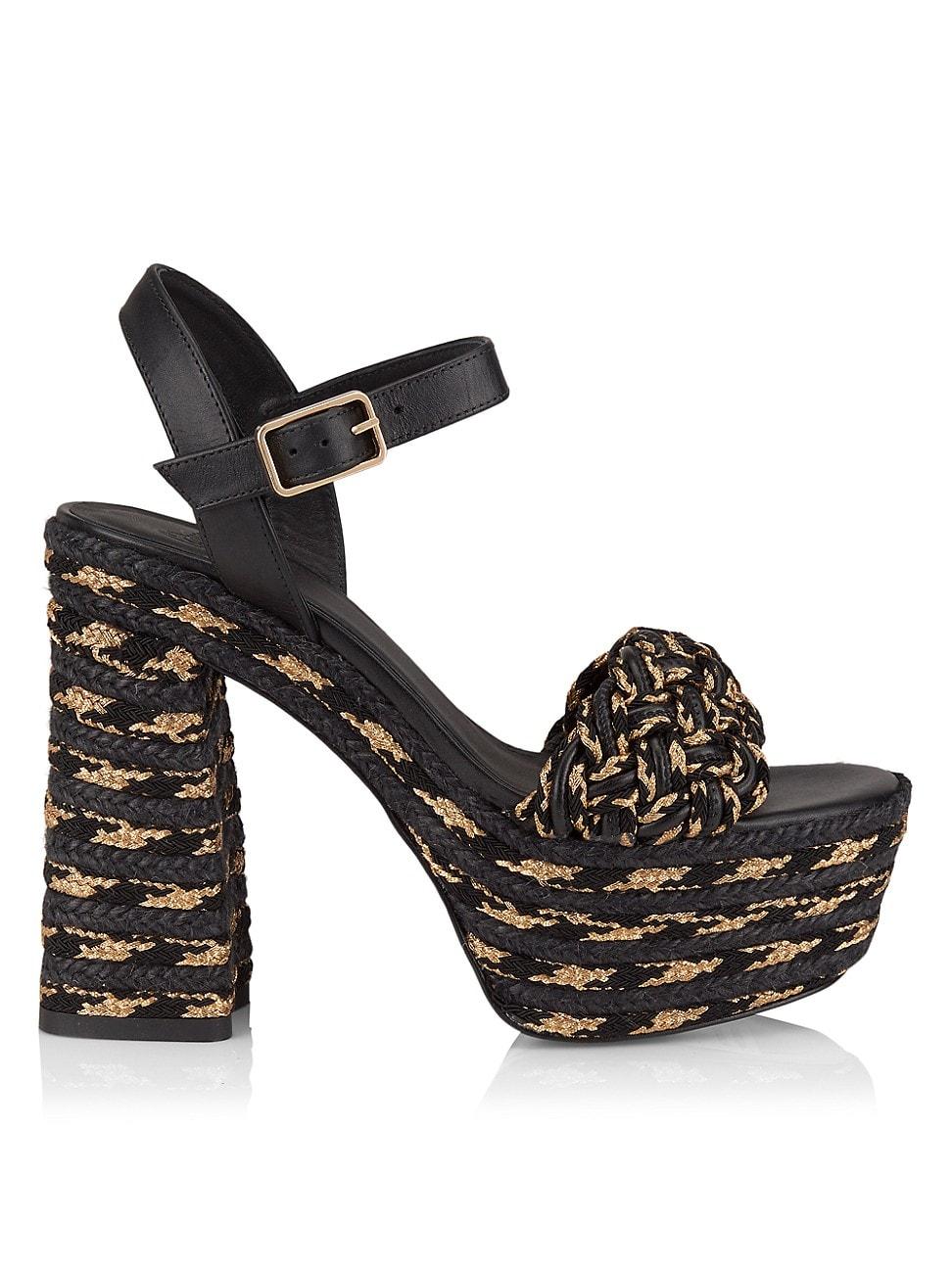 Crafted of woven raffia, the Anne heels by Castaer boast a chunky block heel with a striped pattern and metallic accents. Raffia upper Open toe Adjustable buckle closure Rubber sole Leather lining Made in Spain SIZE Heel height, 3.25 (80mm). Womens Shoes - Contemporary Shoes > Castaer > Saks Fifth Avenue > Barneys. Castaer. Color: Nero Oro. Size: 5.