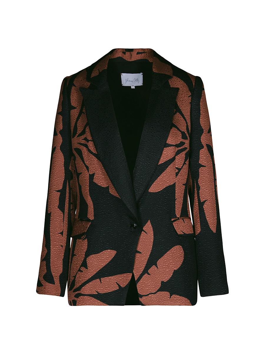 From the Anouk Collection. Johanna Ortizs Force Of Nature blazer is crafted of wool and silk jacquard. This printed style features peaked lapels, side flap pockets, and the labels signature Palm tree print. V-neck Long sleeves Side on-seam pockets Button front closure 59% wool/41% silk Lining: 100% silk Dry clean Imported SIZE & FIT This style is designed for a relaxed fit About 27.7 from shoulder to hem Model measurements: 510 tall Model is wearing a US size Small. Designer Lifestyle - Johanna Ortiz > Johanna Ortiz > Saks Fifth Avenue > Barneys. Johanna Ortiz. Color: Black Brown. Size: Large.