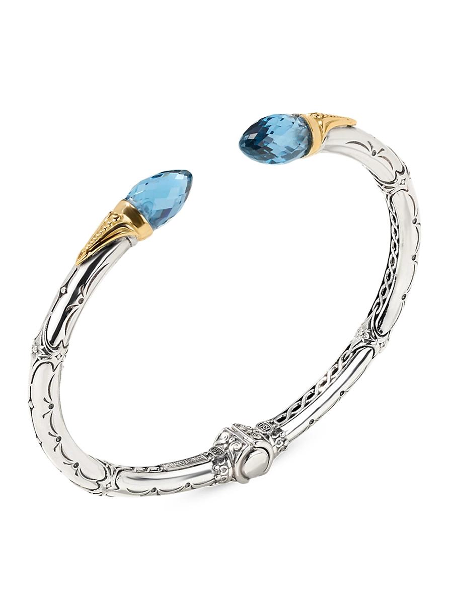 Womens Anthos Dagger Hinge Sterling Silver, 18K Yellow Gold & Blue Spinel Cuff