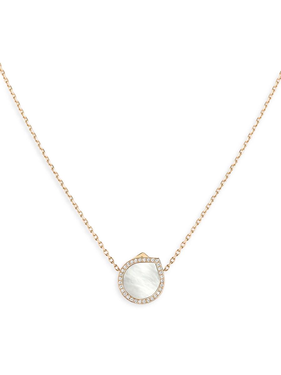 From the Antifer Collection. Crafted of 18K rose gold, Repossis necklace features a peak-inspired pendant inlaid with radiant white mother-of-pearl and bordered by glittering diamonds. Diamonds, 0.18 tcw Mother-of-pearl 18K rose gold Lobster clasp Made in Italy SIZE Chain: adjustable 15.7-17.7L. Fine Jewelry - Fine Jewelry > Repossi > Saks Fifth Avenue > Barneys. Repossi. Color: Mother Of Pearl.