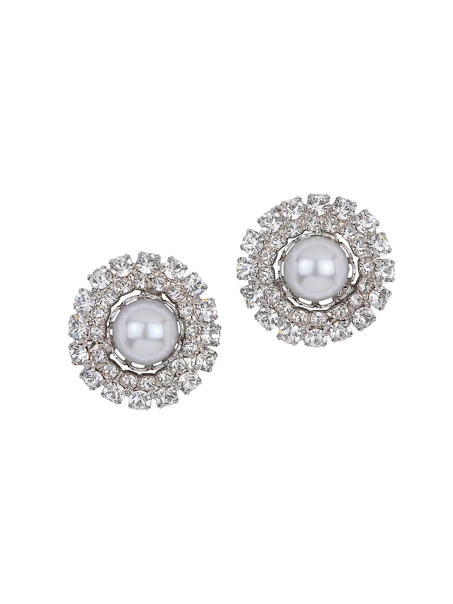 Jennifer Behrs Antinea stud earrings feature a center imitation pearl encircled by a halo of glittering glass crystals. Imitation pearls Glass crystals Rhodium-plated brass Post back Made in USA SIZE About 2 diameter. Fashion Jewelry - Trend Jewelry > Jennifer Behr > Saks Fifth Avenue > Barneys. Jennifer Behr. Color: Crystal Pearl.