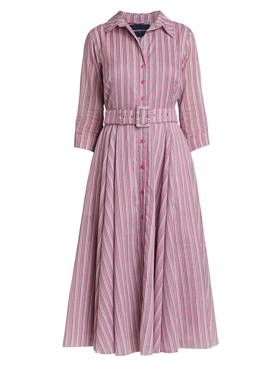 Crafted of lightweight cotton, Samantha Sungs Aster shirtdress showcases a charming Napoli stripe print. This style is designed with three-quarter-length sleeves, a tonal sash self-belt, and side on-seam pockets. Spread collar Three-quarter-length sleeves, button cuffs Sash self-belt Side on-seam pockets Button-front closure 100% cotton Dry clean Imported SIZE & FIT About 47.5 from shoulder to hem Model measurements: 510 tall Model is wearing a US size 4. Designer Lifestyle - Designer Day Dresses > Samantha Sung > Saks Fifth Avenue > Barneys. Samantha Sung. Color: Napoli Stripe White Pink. Size: 16.