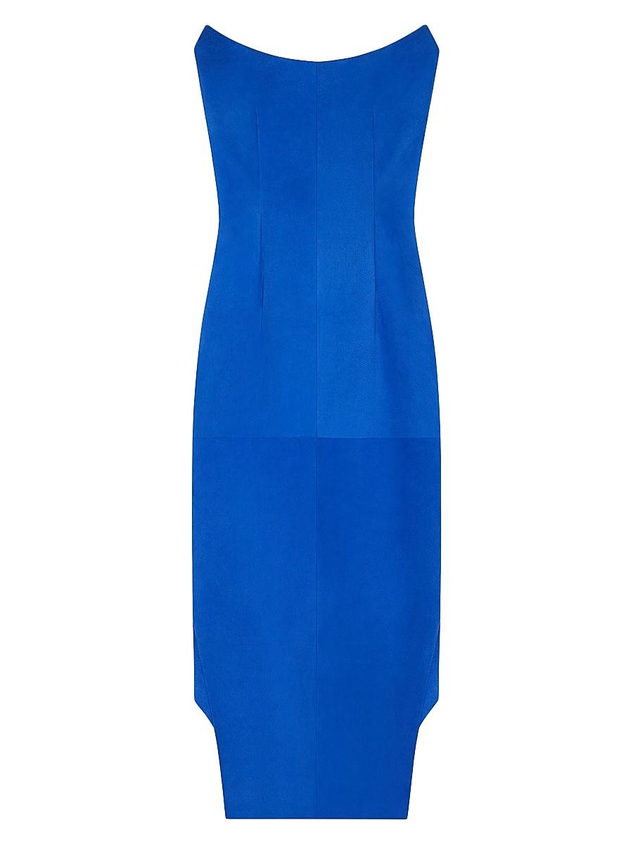 Asymmetric bustier dress in suede. Long bustier dress in suede leather Asymmetrical length long with cut-outs on the front, short on the back Invisible zipped closure on the side Fitted cut Composition: 100% Goat leather Made in Italy. Lsd Rtw - Givenchy Rtw > Givenchy > Saks Fifth Avenue > Barneys. Givenchy. Color: Iris Blue. Size: 4.