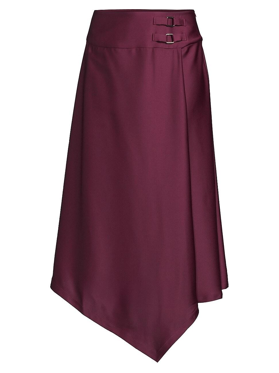 Designed with an asymmetric silhouette, Misooks crepe de chine maxi skirt features a wrap front. Wrap front Asymmetric hem Concealed side zip closure 100% polyester Machine wash Imported SIZE & FIT About 38 long Model measurements: 510 tall Model is wearing a US size Small. Modern Collections - Modern Coll > Misook > Saks Fifth Avenue > Barneys. Misook. Color: Sangria. Size: Large.