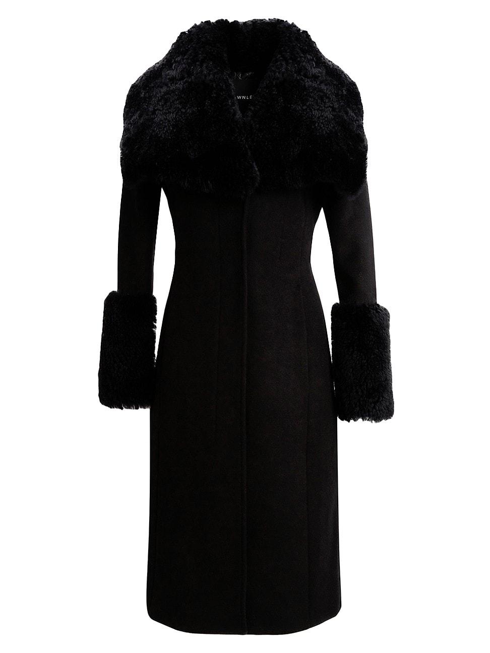Detailed with luxe shearling trim, Dawn Levys Athena long coat features a slim, paneled silhouette with button-front closure. V-neck Long sleeves, fitted cuffs Side slip pockets Button-front closure 81% wool/16% nylon/3% polyester Lining: 95% polyester/5% spandex Fur type: Dyed shearling Fur origin: China Dry clean by leather specialist Imported SIZE & FIT About 42.5 from shoulder to hem Model measurements: 510 tall Model is wearing a US size Small. Outerwear And Swimwear - Down > Dawn Levy > Saks Fifth Avenue > Barneys. Dawn Levy. Color: Cream. Size: Small.