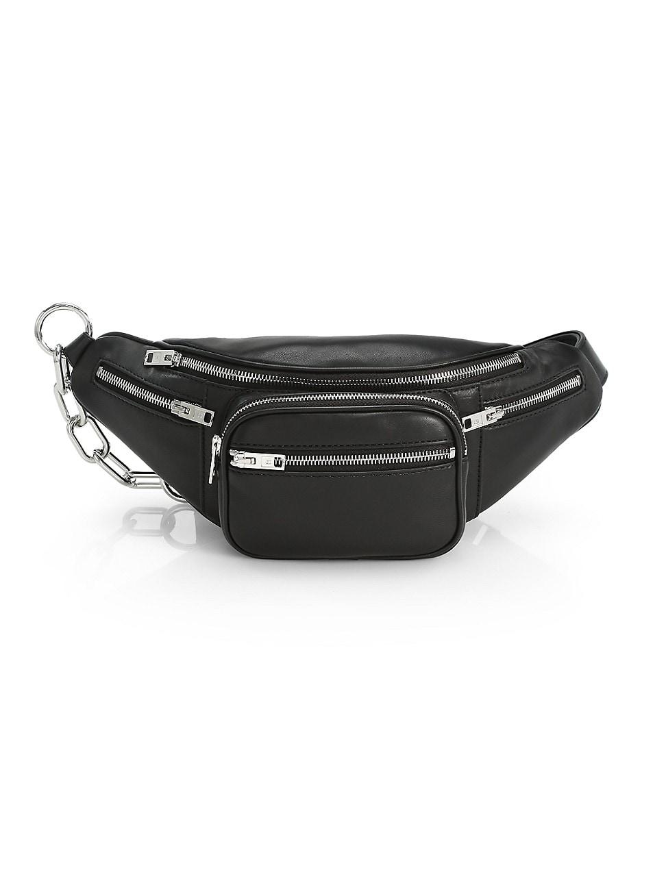 Supple leather shapes this convertible bag modernized with a sleek chain belt and zipper accents. Adjustable chain & leather strap Top zip Exterior front zip pocket Exterior side zip pockets Silvertone hardware One interior compartment Leather Imported SIZE 13.5W x 5.25H x 4.5D ABOUT THE BRAND New York-based fashion wunderkind Alexander Wang founded his namesake label in 2005 at the young age of 21. Renowned for its cool, utilitarian style and signature use of black, the innovative brand continues to infuse an off-duty aesthetic with cutting-edge silhouettes and luxurious textures. Handbags - Collection Handbags > Alexander Wang > Saks Fifth Avenue > Barneys. Alexander Wang. Color: Black.