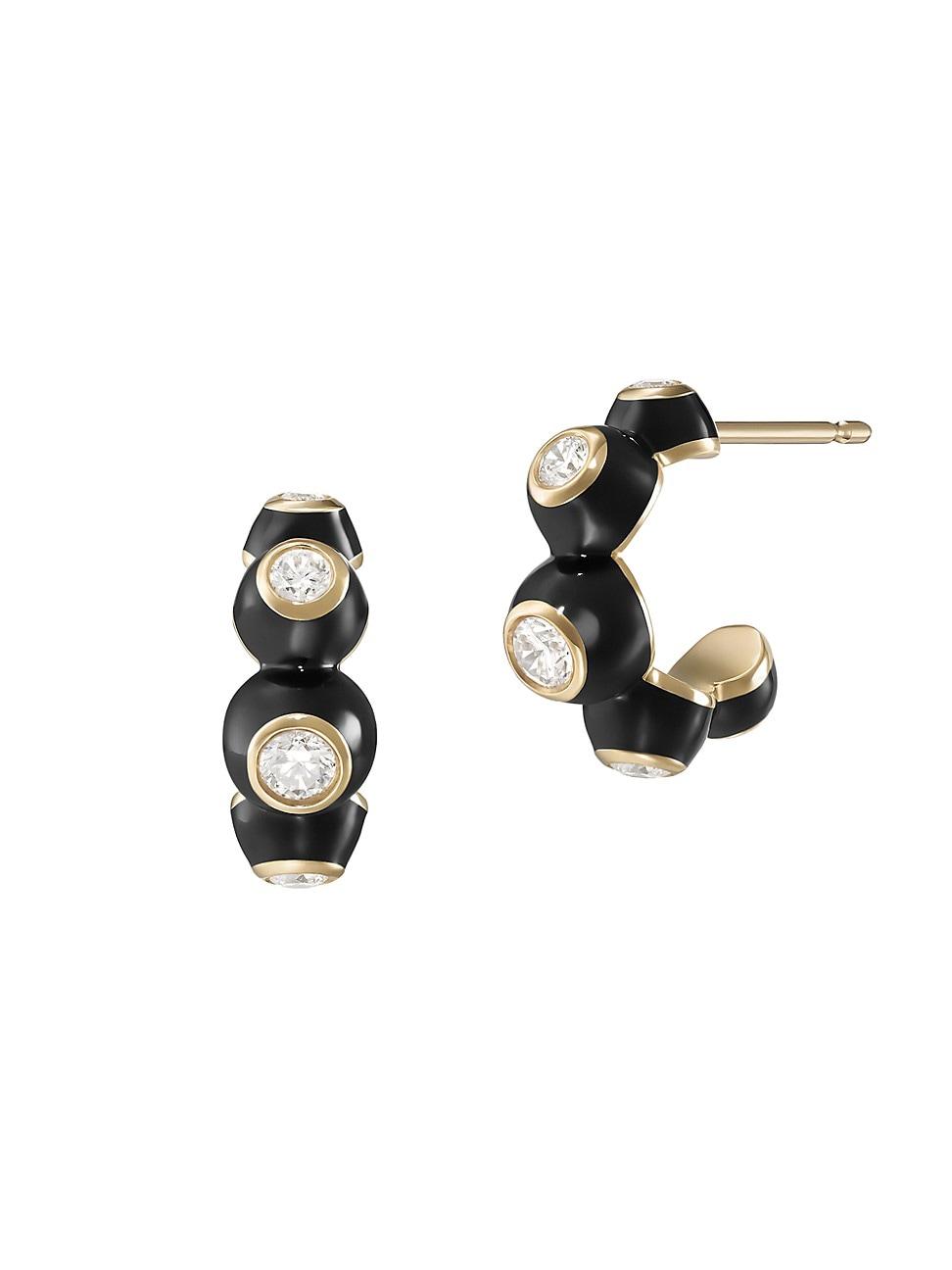 From the Audrey Collection. These hoop earrings from Melissa Kaye are crafted of a string of 18K yellow gold and enamel bubbles, each centered by a brilliant-cut diamond. Diamonds, 0.58 tcw Diamond color: G+ Diamond clarity: VS1+ Enamel 18K yellow gold Post back Made in USA SIZE About 0.55L. Fashion Jewelry - Fashion Designer > Melissa Kaye > Saks Fifth Avenue > Barneys. Melissa Kaye. Color: Black.