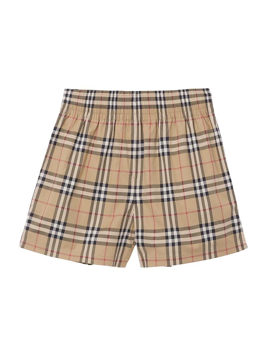 These stretch cotton athletic shorts feature the brands signature archive check giving a statement finish. Elastic waist Pull-on style Side stripes Cotton/elastane Dry clean Imported SIZE & FIT Rise, about 11 Inseam, about 3 Model measurements: 510 tall Model is wearing a US size 4 ABOUT THE BRAND Founded in 1856 by 21-year-old Thomas Burberry, the brand set out with a mission to stylishly protect against British weather-and Burberrys iconic trench coat was born. In the 1920s, its renowned check pattern was introduced as the coats lining. The heritage brand now offers handbags, beauty and kids ready-to-wear, and under Creative Director Riccardo Tisci, the brand continues to evolve and create timelessly classic pieces. Advanced Designer - Burberry > Burberry > Saks Fifth Avenue > Barneys. Burberry. Color: Archive Beige Check. Size: 14.