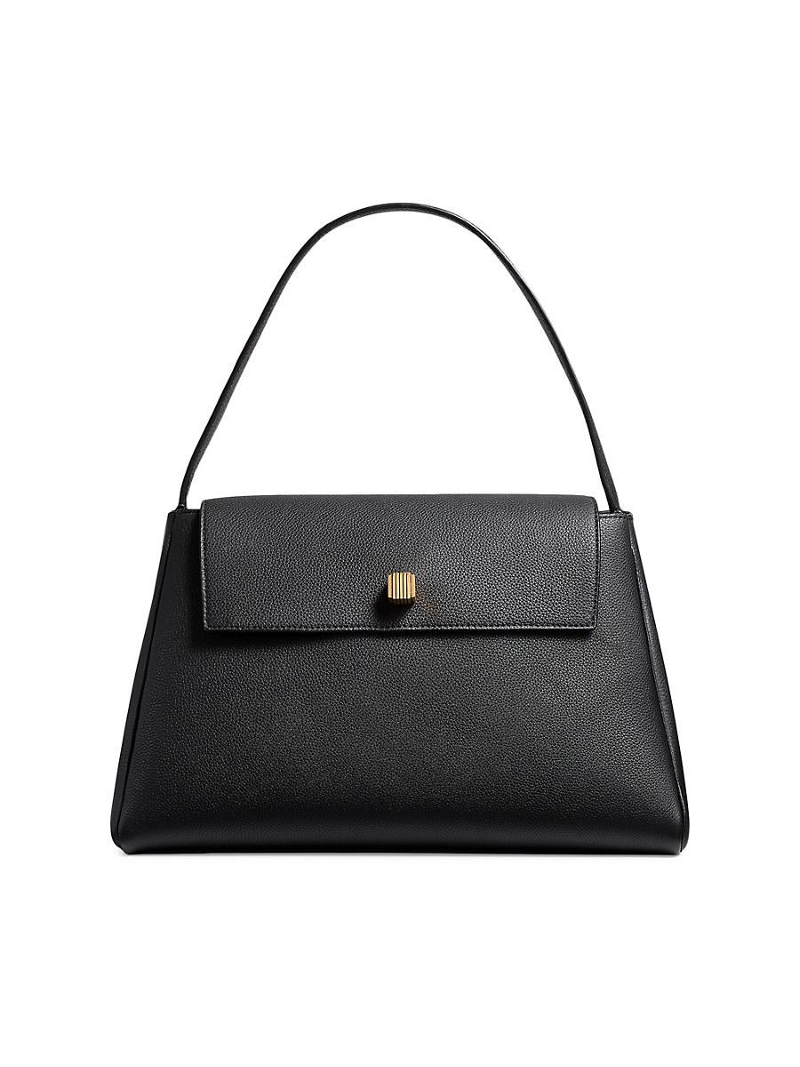 Made in Italy, the Audrey shoulder bag from Khaite is crafted of grained leather and detailed with goldtone hardware. Shoulder strap Interior: one slip pocket Flap with flip-lock closure Leather Spot clean Made in Italy SIZE About 13W x 7H x 8.75D. Handbags - Advanced Designer Handba > Khaite > Saks Fifth Avenue > Barneys. Khaite. Color: Black.