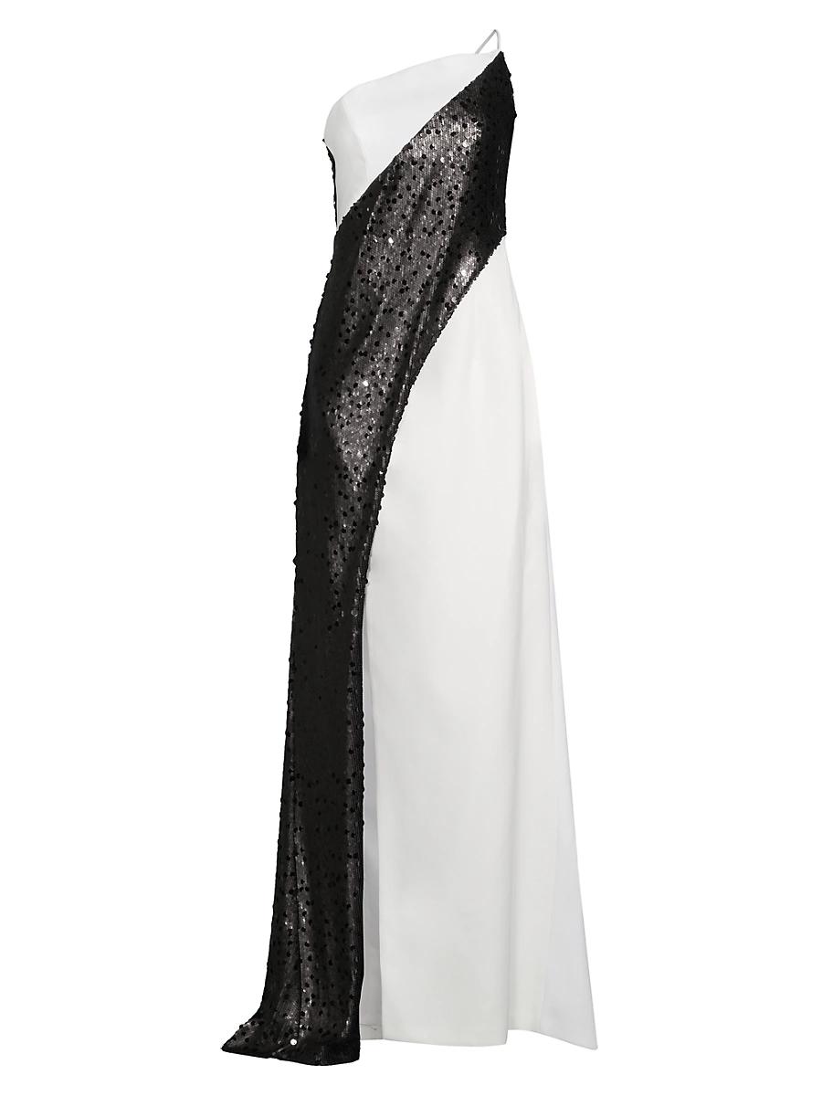 Crafted of smooth crepe, Toccins Ava gown flaunts a one-shoulder neck and slightly flared skirt. Semi-matte sequins and a colorblocked design define this sweeping style. One-shoulder Sleeveless Side-zip closure 92% polyester/8% polyurethane Lining: 100% polyester Dry clean Made in USA SIZE & FIT About 60 from shoulder to hem Model measurements: 510 tall Model is wearing a US size 4. Dress Collections - Modern Evening > Toccin > Saks Fifth Avenue > Barneys. Toccin. Color: Optic Jet. Size: 2.
