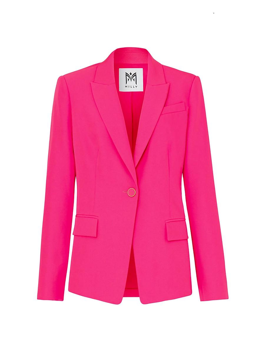 Millys tailored Avery cady blazer is decorated with tonal buttons trimmed with goldtone hardware. Designed with peak lapels, this style features flap pockets. Peak lapels Long sleeves, button accent at cuffs Front-button closure Front flap pockets 97% polyester/3% spandex Lining: 100% polyester Dry clean Imported SIZE & FIT About 27.5 from shoulder to hem Model measurements: 510 tall Model is wearing a US size 4. Modern Collections - Milly > Milly > Saks Fifth Avenue > Barneys. Milly. Color: Milly Pink. Size: 10.