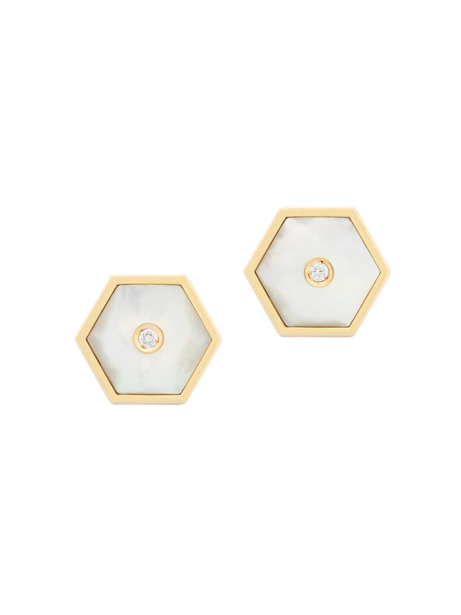 From the Baia Collection. Handcrafted of 18K yellow gold, Misenos hexagonal stud earrings feature white mother-of-pearl inlays and sparkling round diamonds. Diamonds, 0.07 tcw Diamond color grade: G-H Diamond clarity grade: VS1 Mother-of-pearl 18K yellow gold Post back Made in Italy SIZE About 0.25 diameter. Fine Jewelry - Fine Designer Jewelry C > Miseno > Saks Fifth Avenue > Barneys. Miseno. Color: Yellow Gold.