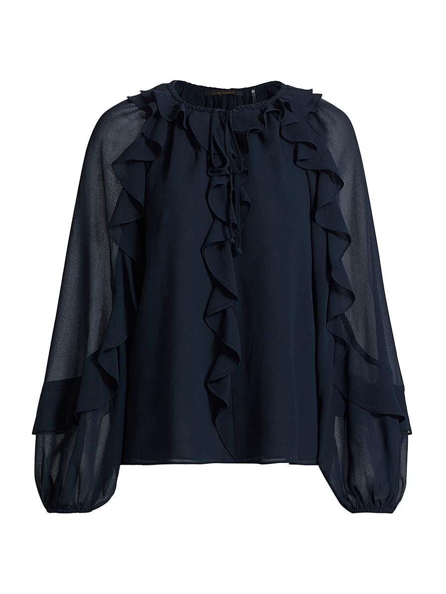 Kobi Halperins Bali blouse is crafted of crepe chiffon and is detailed with ruffled trim. Round neck Long sleeves, elasticized cuffs Straight hem Front self-tie closure 100% polyester Lining: 100% polyester Dry clean Imported SIZE & FIT About 25 from shoulder to hem Model measurements: 510 tall Model is wearing a US size Small ABOUT THE BRAND With an extensive background in womens ready-to-wear, Israeli designer Kobi Halperin launched his eponymous line in 2015. Halperins collections evoke a sense of warmth with lively prints and cheerful use of color. Everyday pieces like dresses, blouses and trousers are elevated with luxe fabrics, handcrafted embellishments and intricate details. Modern Collections - Kobi Halperin > Kobi Halperin > Saks Fifth Avenue > Barneys. Kobi Halperin. Color: Navy. Size: XL.