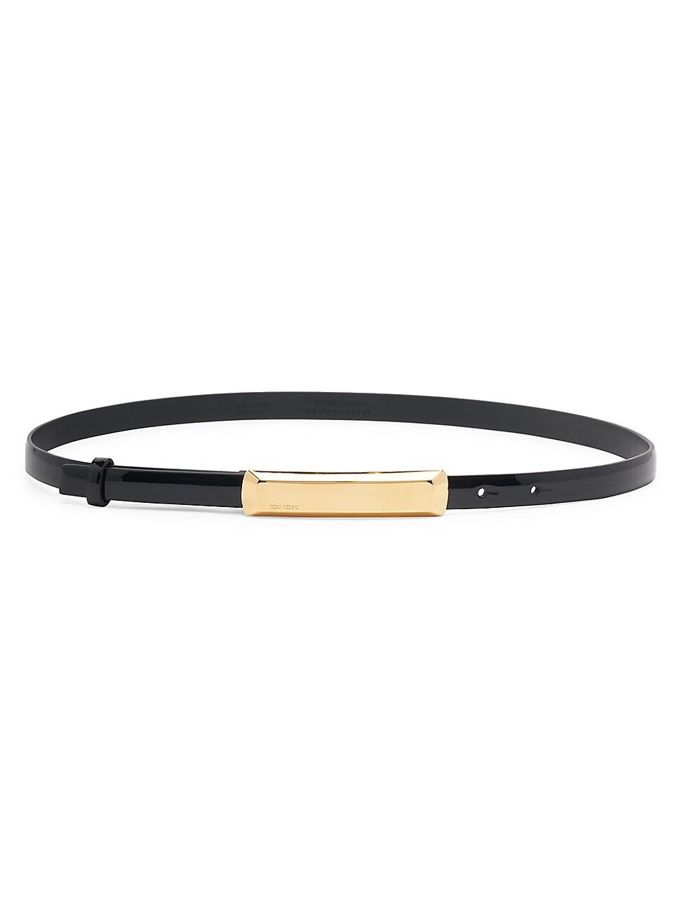 From the Bar Collection. Crafted of patent leather, this slim belt features a streamlined goldtone bar buckle closure that is engraved with Tom Ford. Push-pin closure Goldtone brass hardware Leather Made in Italy SIZE Width: about 0.6 (15mm) ABOUT THE BRAND After 10 years of serving as the Creative Director for several international luxury fashion houses, Tom Ford launched his own line of optical frames, sunglasses and beauty in 2005. The following year he debuted menswear, and in 2010, womens ready-to-wear. His sleek, tailored aesthetic has since catapulted him to mega-brand status. Soft Accessories - Belts > Tom Ford > Saks Fifth Avenue > Barneys. TOM FORD. Color: Black. Size: Medium.