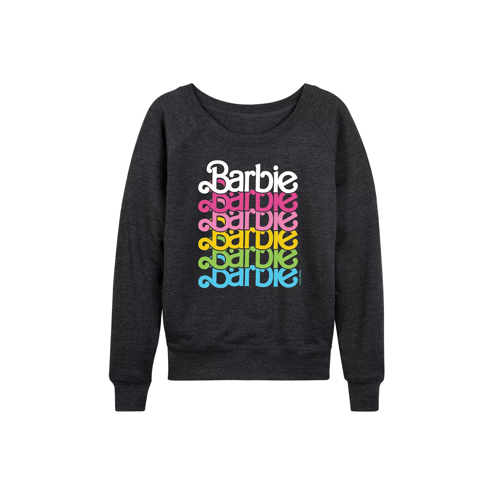 Heather Charcoal Barbie Stacked Rainbow Pullover - Women & Plus. Treat yourself to a childhood throwback with this charming graphic pullover that features a classic Barbie graphic.Full graphic text: Barbie (repeats).Size S: 24 long from high point of shoulder to hemLightweight French terry knit60% cotton / 40% polyesterMachine wash; tumble dryImported, screen printed in the USA