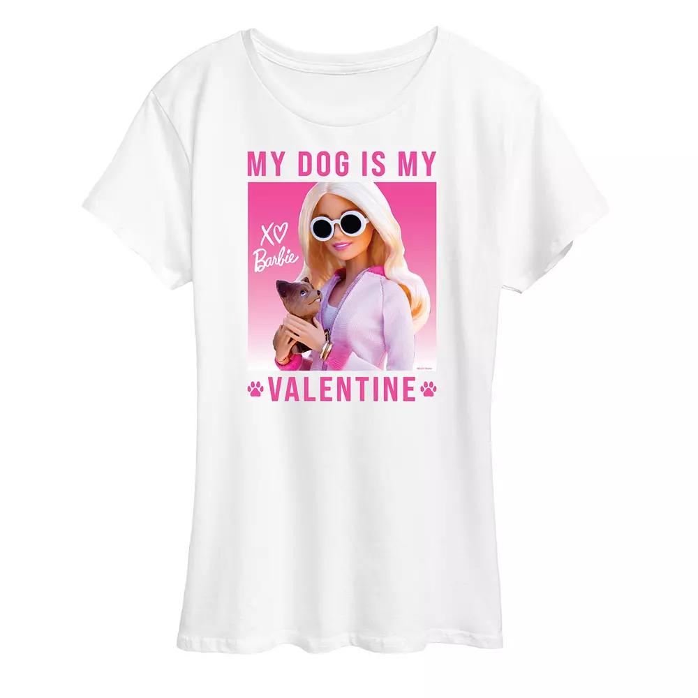 She will love showing off her style with this Womens Barbie My Dog Is My Valentine Graphic Tee. BARBIE and associated trademarks and trade dress are owned by, and used under license from, Mattel. 2023 Mattel. FEATURES Short sleeves CrewneckFABRIC & CARE Solid Color: Cotton ; Heather Colors: Cotton/Polyester Machine wash Imported Size: Large. Color: White. Gender: female. Age Group: adult.