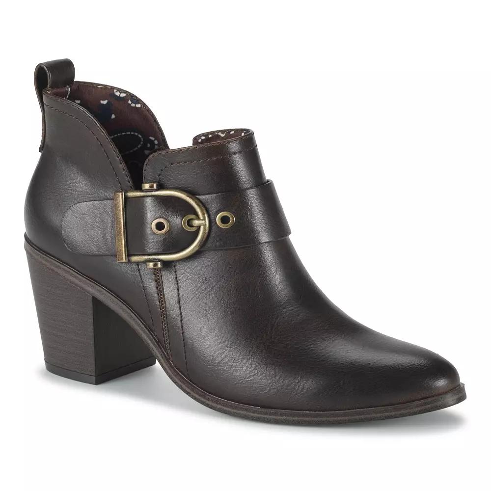 Elevated elegance is the name of the game in the thoughtfully crafted Baretraps Karina booties. Click this FOOTWEAR GUIDE to find the perfect fit and more! Elevated elegance is the name of the game in the thoughtfully crafted Baretraps Karina booties. Click this FOOTWEAR GUIDE to find the perfect fit and more! FEATURES AnkleDETAILS Manmade 100%, 3% recycled material Fabric lining Manmade outsole Almond toe Zipper closure Polyurethane footbed Slip-resistant outsole Heel Height: 3-in. Boot shaft height: 3-in. Boot shaft width: 9.5-in. Spot clean Imported Size: 11. Color: Brown. Gender: female. Age Group: adult.