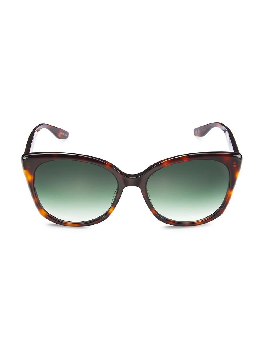 From the Barton Perreira x Kelley Baker Collaboration. These cat eye sunglasses feature a saddle nose bridge and thin, tapered arms with heart accent on the earpieces. 100% UVA/UVB protection Gradient lenses Case and cleaning cloth included Semi-transparent acetate Made in Japan SIZE 56mm lens width 18mm bridge width 145mm temple length. Soft Accessories - Sunglasses > Barton Perreira > Saks Fifth Avenue > Barneys. Barton Perreira. Color: Transparent Grey.