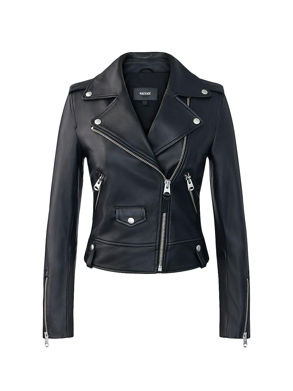 Mackages Baya biker jacket is crafted of soft lambskin to a fitted silhouette with archetypal zip detailing. Notch collar Shoulder epaulettes Long sleeves with zip cuffs Asymmetric zip front Waist zip pockets Front coin pocket Lined Leather Dry clean by leather specialist Imported SIZE & FIT About 20 from shoulder to hem Model measurements: 510 tall Model is wearing a US size Small ABOUT THE BRAND Eran Elfassy, inspired by his brothers leather expertise, founded Mackage in 1999 in Montreal, Canada. Two years later, with designer Elisa Dahan, they created a comprehensive outerwear brand offering everything from fine leather jackets to tailored wool coats and down parkas. Designed to be both comfortable and warm, the brands high-performance gear also provides protection in freezing temperatures. Outerwear And Swimwear - Down > Mackage > Saks Fifth Avenue > Barneys. Mackage. Color: Black. Size: Large.
