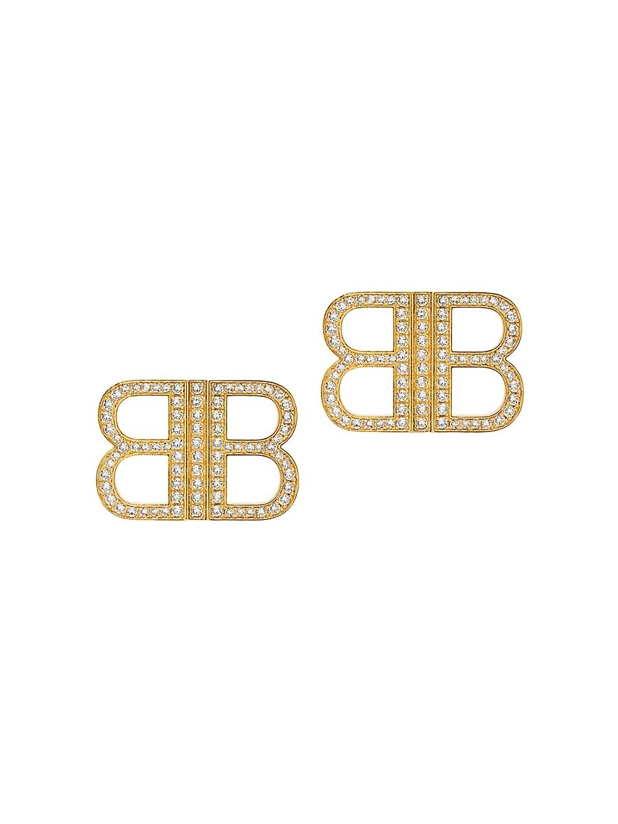 BB 20 Earrings in gold aluminium, brass and rhinestones. Aluminium. brass and glass Earrings BB logo with white rhinestones Round stoppers at the back closure For pierced ears Sold as a pair Made in Italy Wipe with a soft cloth SIZE Dimensions: 2.1L x 1.5H x 0.2W. Lsd Handbags - Balenciaga > Balenciaga > Saks Fifth Avenue > Barneys. Balenciaga. Color: Gold Crystal.