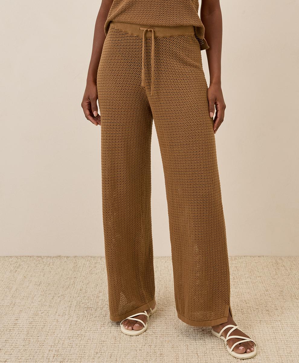 Pact Organic Womens Brown Sugar Beachside Crochet Knit Pant
