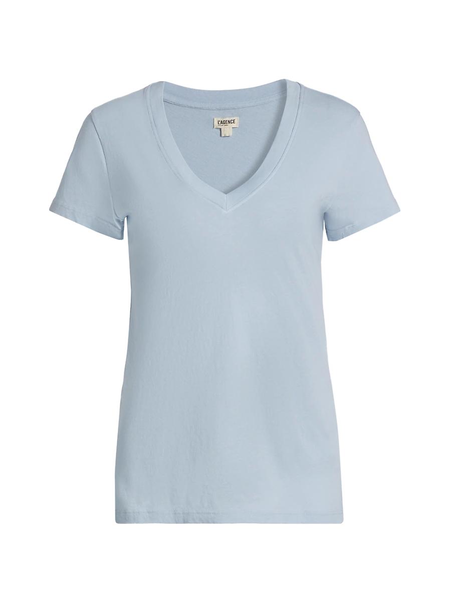 This breathable cotton tee carries a timeless appeal. V-neck Short sleeves Ribbed trim Cotton Machine wash Made in USA SIZE & FIT About 24.5 from shoulder to hem Model shown is 510 (177cm) wearing US size Small ABOUT THE BRAND Founded in 2008, LAgence marries Southern California ease with chic Parisian style. Using luxurious fabrics, the Los Angeles-based label delivers feminine collections that are both timeless and versatile. In 2015, the label launched a denim line in a range of sleek, impeccably tailored cuts. Contemporary Sportswear - Denim And Bottoms > Lagence > Saks Fifth Avenue > Barneys. LAGENCE. Color: Blue Fog. Size: XS.