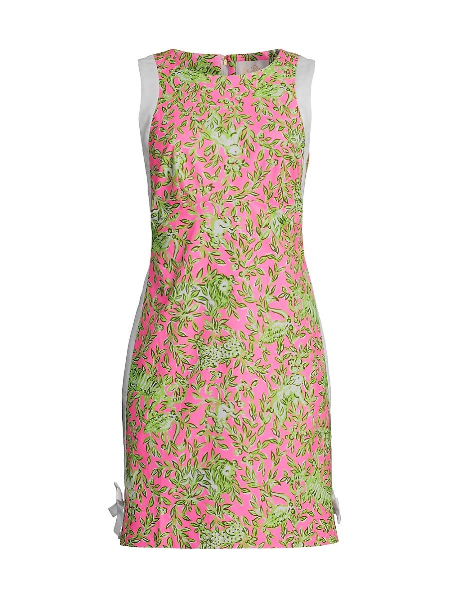 Lilly Pulitzers Beckler minidress features a print and bows at the side. Boatneck Sleeveless Back zip closure 98% cotton/2% spandex Dry clean Imported SIZE & FIT Model measurements: 510 tall Model is wearing a US size 4. Modern Collections - Lilly Pulitzer > Lilly Pulitzer > Saks Fifth Avenue > Barneys. Lilly Pulitzer. Color: Rousseau Pink. Size: 0.