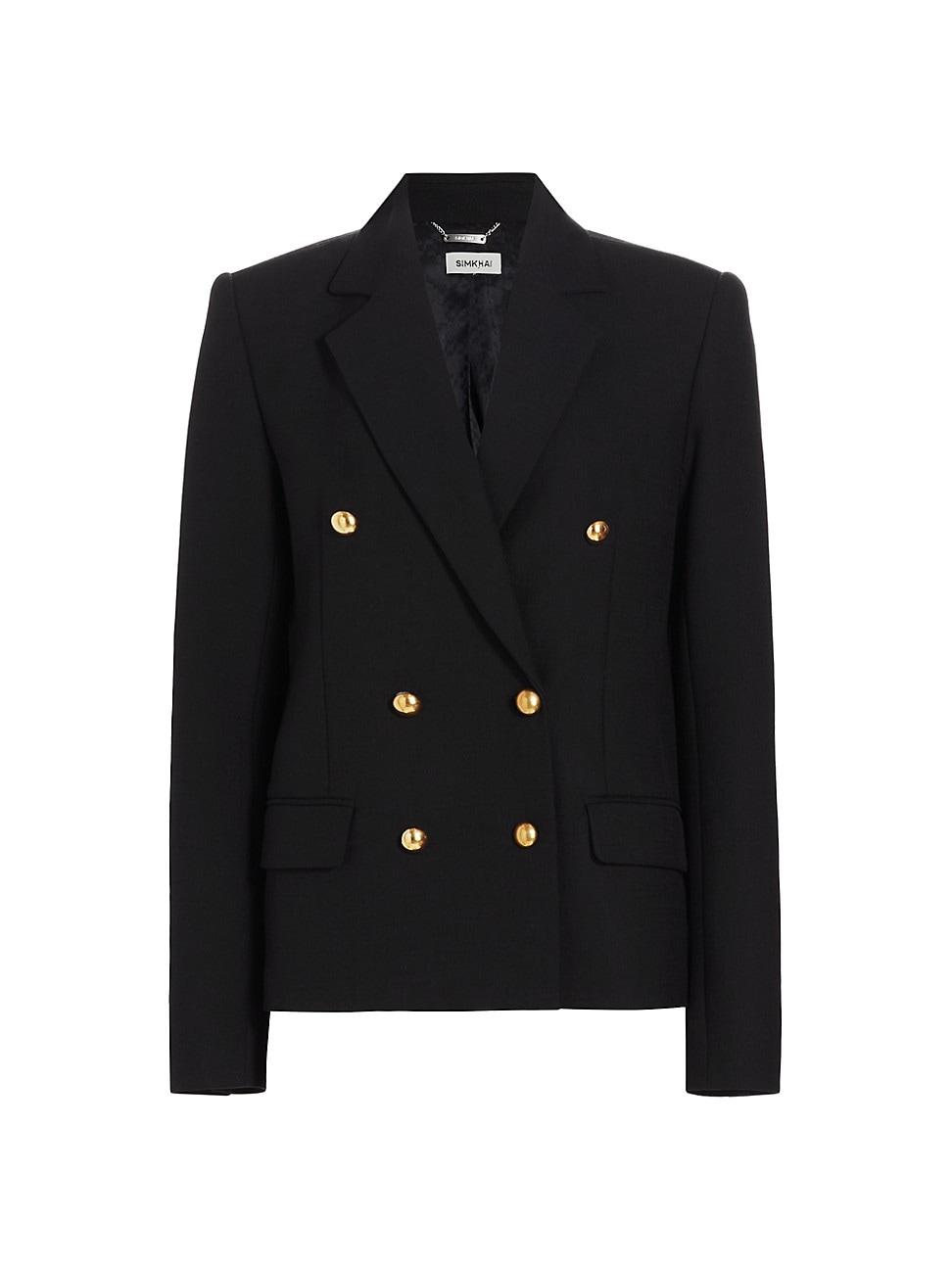 SIMKHAIs Becky double-breasted blazer showcases a tailored design with classic double-breasted closure with goldtone buttons. Notch lapels Long sleeves, button cuffs Front flap pockets Double-breasted button closure 67% viscose/31% polyester/2% elastane Lining: 55% polyester/45% viscose Dry clean Imported SIZE & FIT About 28.5 from shoulder to hem Model measurements: 510 tall Model is wearing a US size 4. Contemporary Sportswear - Workshop > Simkhai > Saks Fifth Avenue > Barneys. SIMKHAI. Color: Black. Size: 2.