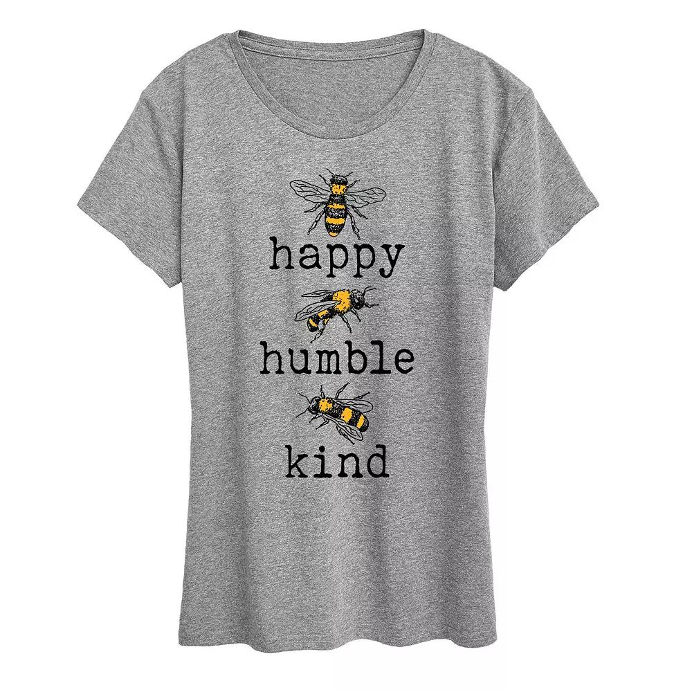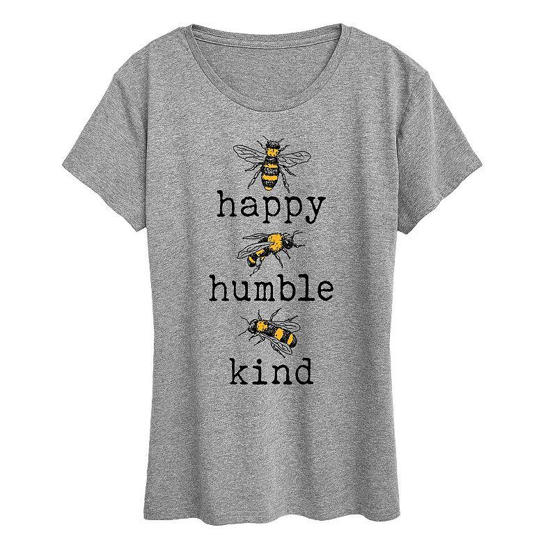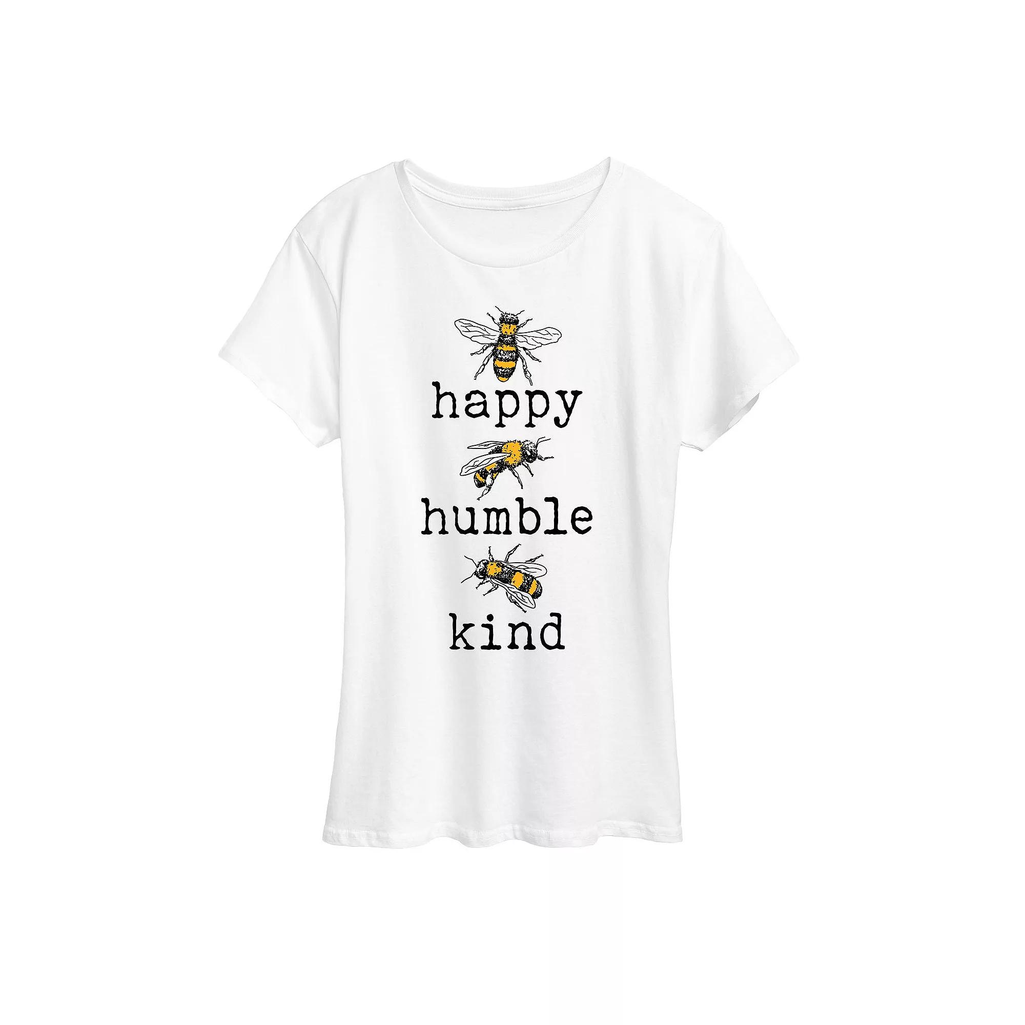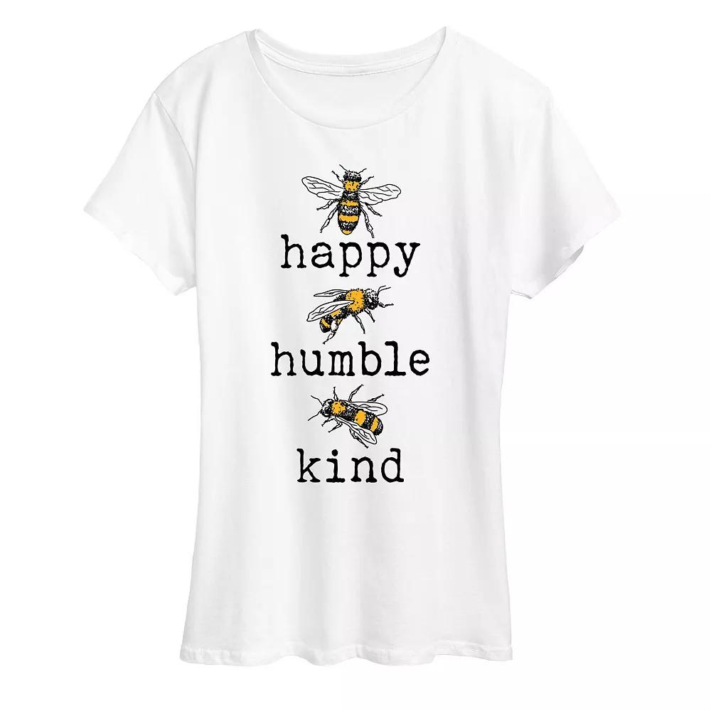 Women's Bee Happy Bee Humble Bee Kind Graphic Tee, Girl's,