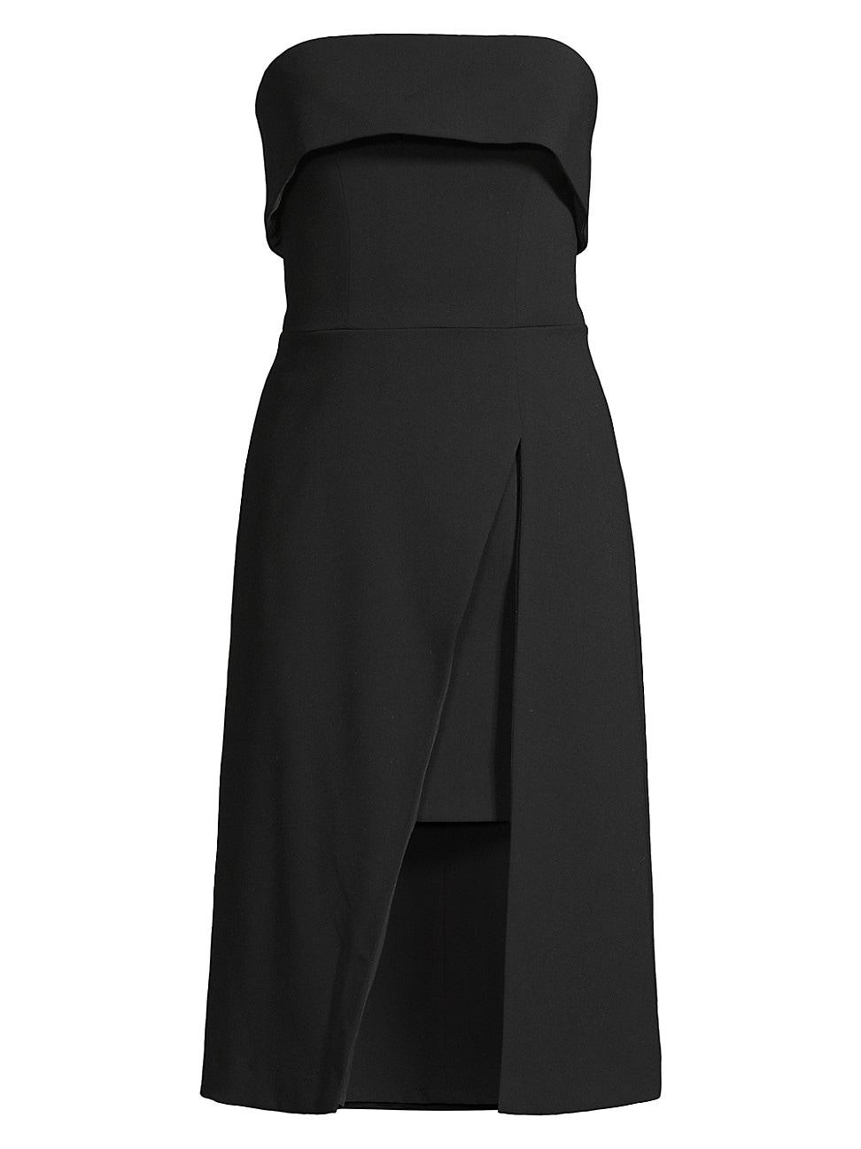 From the BH Collection. Black Halos Louie sheath dress presents a strapless neckline and is sleeveless, showcasing a chic and contemporary aesthetic. Strapless Sleeveless Front slit Asymmetric hem Concealed back zip clpsure 62% polyamide/32% rayon/6% elastane Lining: Polyamide/elastane Dry clean Made in USA of Imported fabric SIZE & FIT About 44 from topline to hem Model measurements: 510 tall Model is wearing a US size 2. Dress Collections - Contemporary Evening > Black Halo > Saks Fifth Avenue > Barneys. Black Halo. Color: Black. Size: 12.