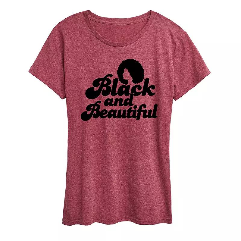 Womens Black and Beautiful Graphic Tee Grey Dark Red