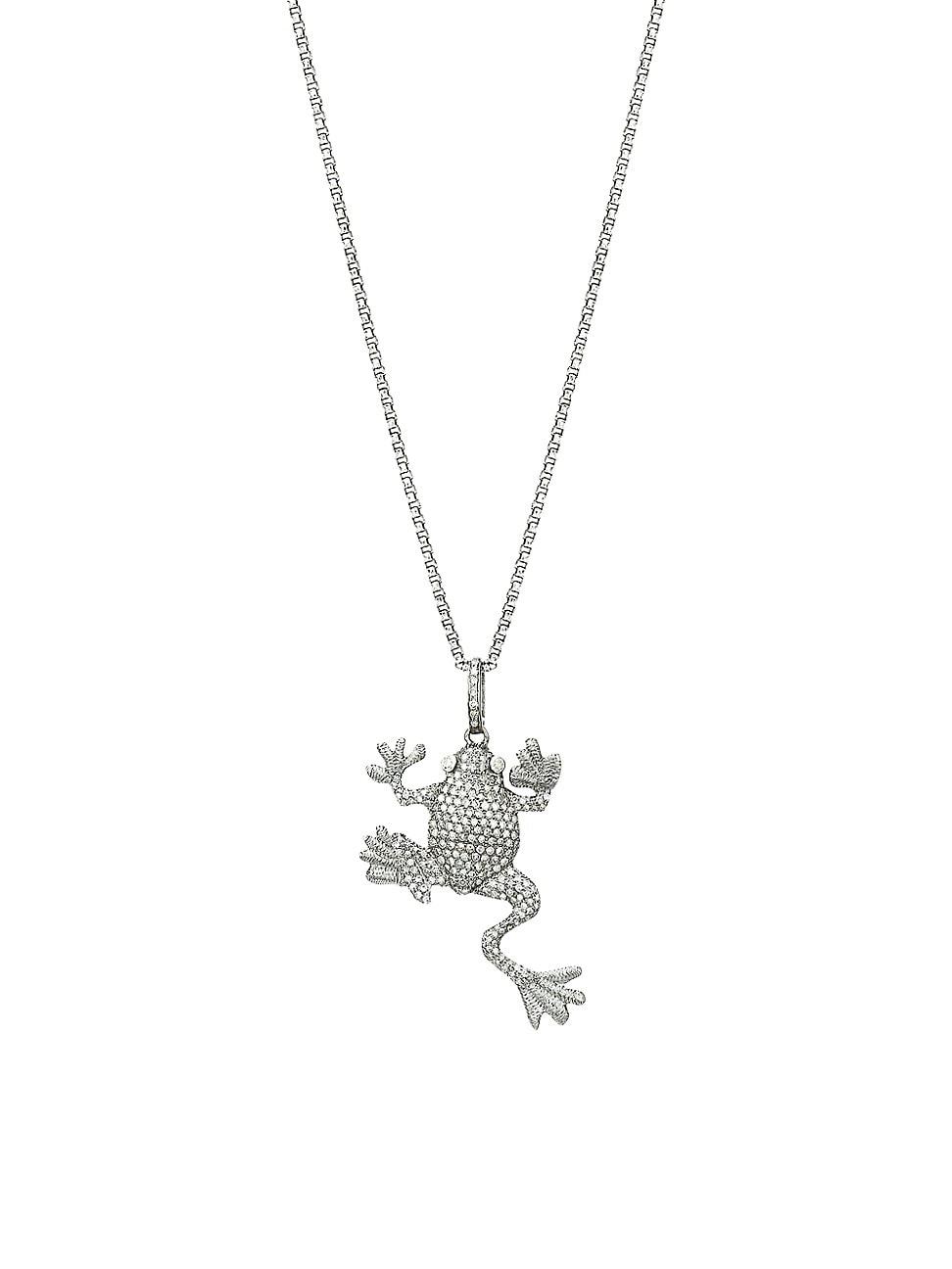 Whimsical diamond pav frog pendant with diamond eyes suspends from a long box chain. Diamonds, 0.82 tcw Diamond clarity, SI-1 Diamond color, I-J Black rhodium-plated silver Lobster clasp Imported SIZE Chain length, about 16.5 with 2.5 extender Pendant length, about 1.5. Fashion Jewelry - Semi Prec Coll C > Nina Gilin > Saks Fifth Avenue > Barneys. Nina Gilin. Color: Black Rhodium.