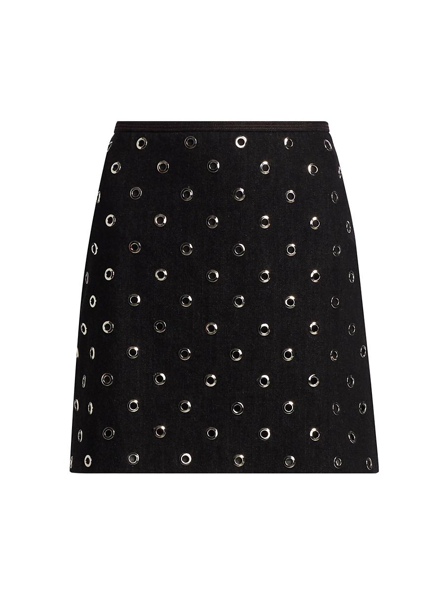Veronica Beards Blaire miniskirt showcases a silvertone grommet embellished design. Banded waist Back zip closure 100% cotton Lining: 100% polyester Dry clean Imported SIZE & FIT Length: about 17 Model measurements: 510 tall Model is wearing a US size 4 ABOUT THE BRAND Veronica Beard was founded by sisters-in-law Veronica Miele Beard and Veronica Swanson Beard in 2010. With a strong belief in enduring personal style, the co-designers focus on elevated everyday pieces, like their signature structured blazers and easy-chic dresses. Contemporary Sportswear - Veronica Beard > Veronica Beard > Saks Fifth Avenue > Barneys. Veronica Beard. Color: Washed Black Silver. Size: 8.