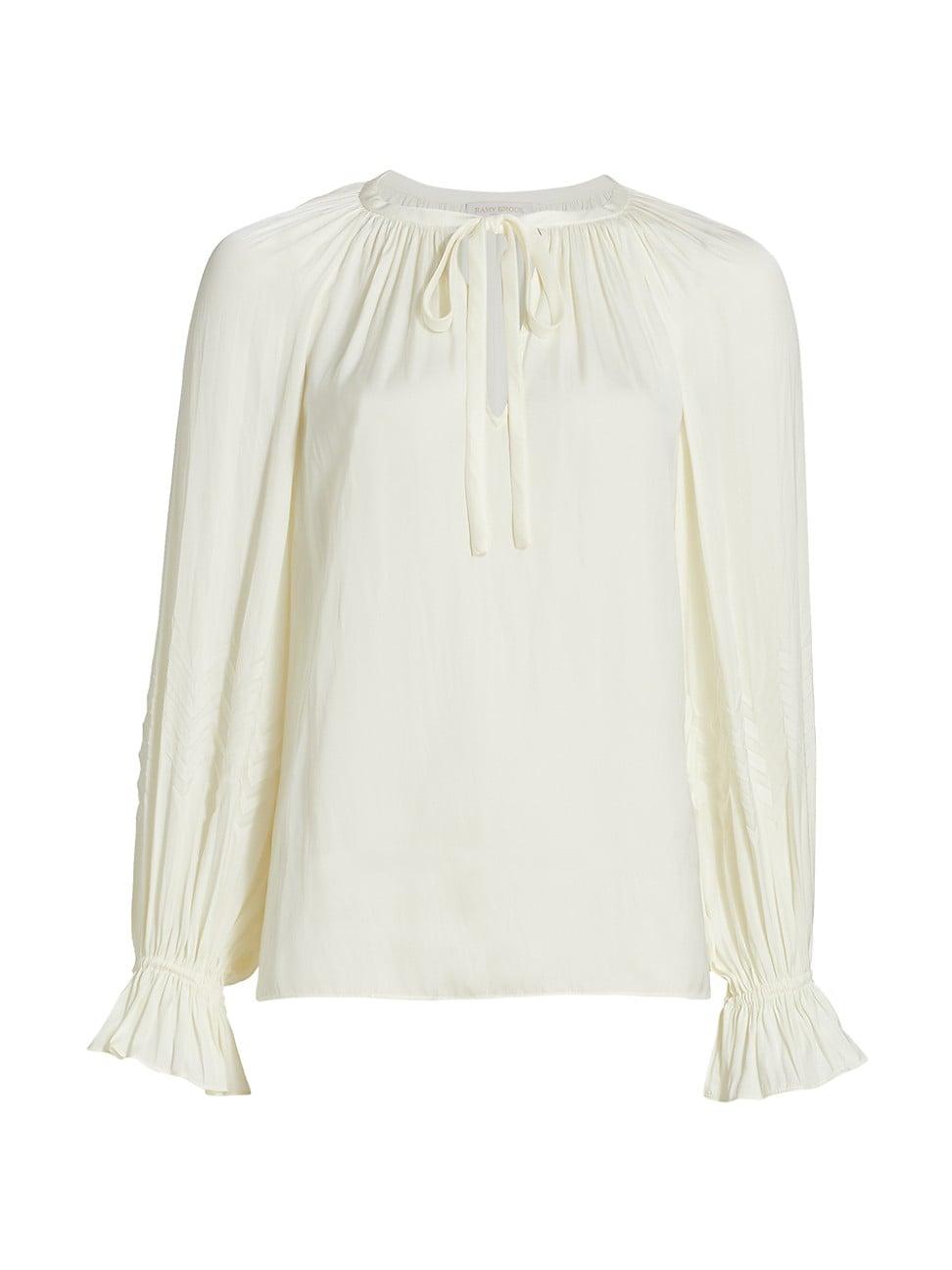 Ramy Brooks Blake blouse is made of lustrous satin and features a front self-tie closure and long sleeves with flared cuffs. Round neck Long sleeves, flared cuffs Self-tie closure 100% polyester Dry clean Imported SIZE & FIT About 25 from shoulder to hem Model measurements: 510 tall Model is wearing a US size 4. Contemporary Sportswear - Contemporary Collections > Ramy Brook > Saks Fifth Avenue > Barneys. Ramy Brook. Color: Ivory. Size: Medium.
