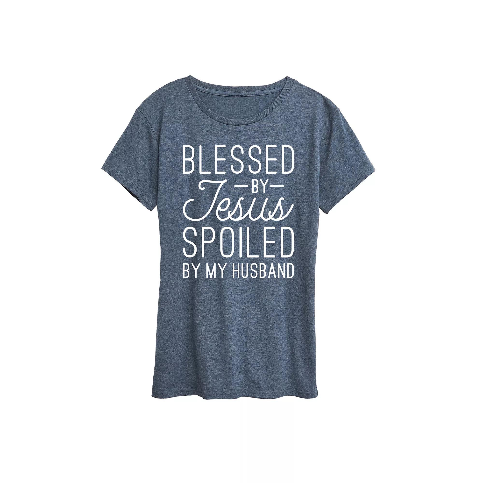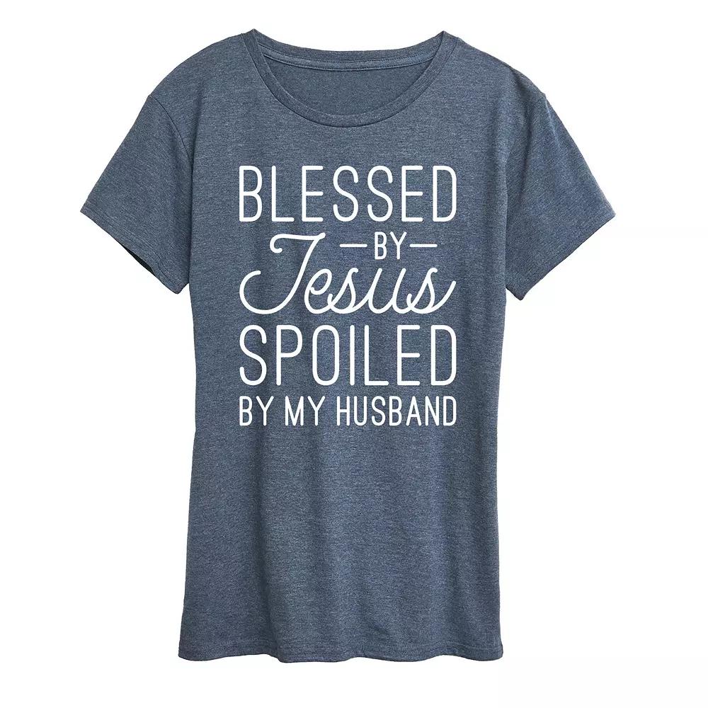 She will love showing off her style with this Womens Blessed By Jesus Graphic Tee. She will love showing off her style with this Womens Blessed By Jesus Graphic Tee. FEATURES Short sleeves CrewneckFABRIC & CARE Solid Color: Cotton ; Heather Colors: Cotton/Polyester Machine wash Imported Size: Small. Color: Heather Blue. Gender: female. Age Group: kids.