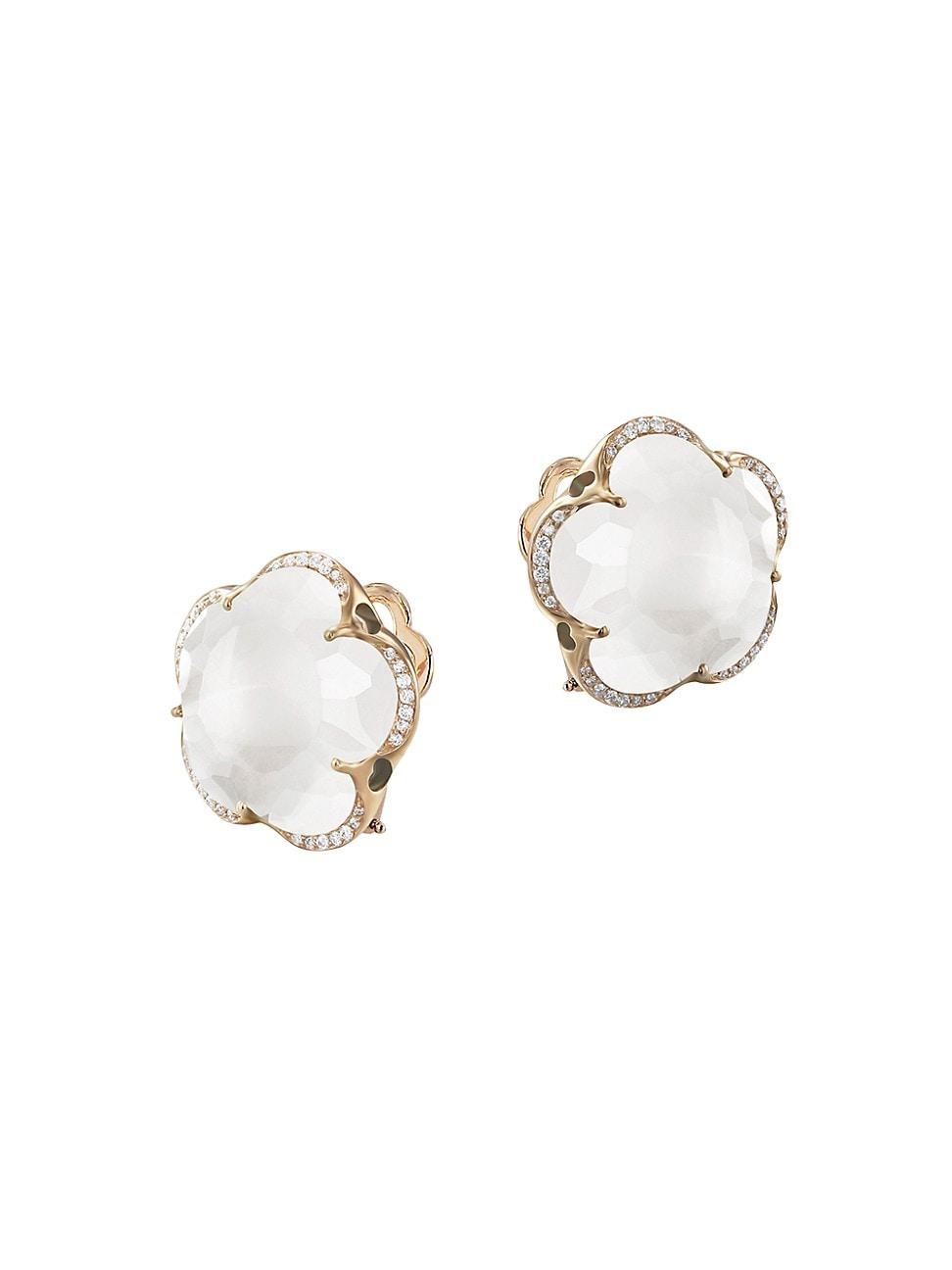 From the Bon Ton Collection. Luminous milky quartz stones in the five-petal flower House icon, lined with shimmering white diamonds and set in polished 18K rose gold. Milky quartz, 19.94 tcw White diamonds, 0.18 tcw 18K rose gold Leverback Made in Italy SIZE Diameter, about 0.5. Fine Jewelry - Fine Designer Jewelry C > Pasquale Bruni > Saks Fifth Avenue > Barneys. Pasquale Bruni. Color: White.