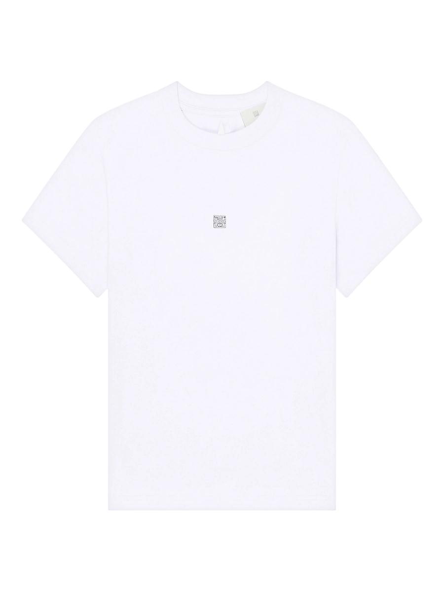 Bow T-shirt in cotton with 4G Liquid detail. A key design element of Hubert de Givenchys creations, the bow is reinterpreted this season. True to the couturiers love for the wow effect, it contrasts a plain front with a surprising back, adding a touch of romance to the Houses timeless elegance and sophisticated charm. Short-sleeved T-shirt in cotton Crewneck Golden-finish 4G Liquid metal piece on the front Back opening with bow on the bottom Classic fit Composition: 100% cotton Made in Portugal. Lsd Rtw - Givenchy Rtw > Givenchy > Saks Fifth Avenue > Barneys. Givenchy. Color: White. Size: XS.