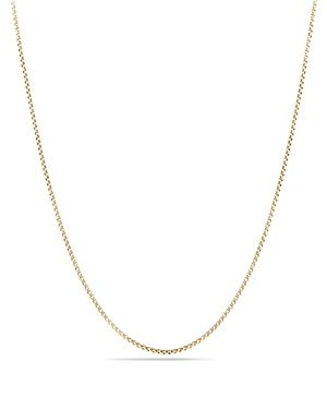 David Yurman chains are inspired by classical and original motifs, and meticulously crafted by artisans. They are designed to be worn alone, layered, or complemented with unique enhancers or charms from our other collections. 18K Yellow Gold Adjustable clasp Made in Italy SIZE Chain width, about 1.7mm Length, about 36 ABOUT THE BRAND David, a sculptor, and his wife, Sybil, a painter, launched their innovative jewelry brand in 1980 in New York City. Since then, the American design house has pioneered cutting-edge collections - from its iconic combination of sterling silver and diamonds to signature pinky rings. Today, with their son Evan, the Yurmans continue to deliver timeless pieces inspired by nature, art, ancient symbols and Manhattans stunning architecture. Lsd Jewelry - David Yurman > David Yurman > Saks Fifth Avenue > Barneys. David Yurman. Color: Gold. Size: 0.